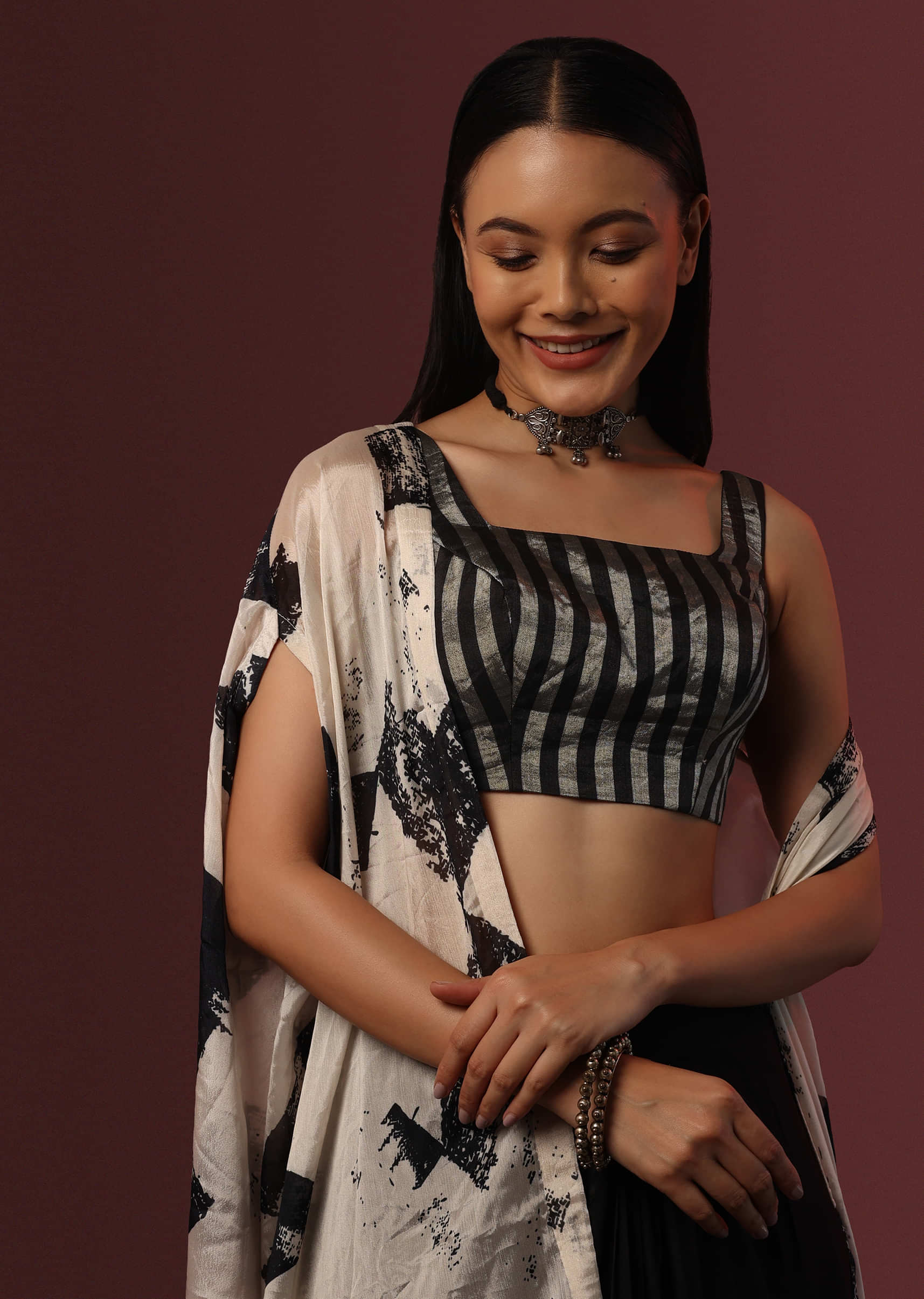 The black and silver striped blouse is fabricated on tissue fabric with a square neckline and side zip closure with tassel dori. Awarded as the Most Trusted Brand, we're delivering styles you love, just as promised.
