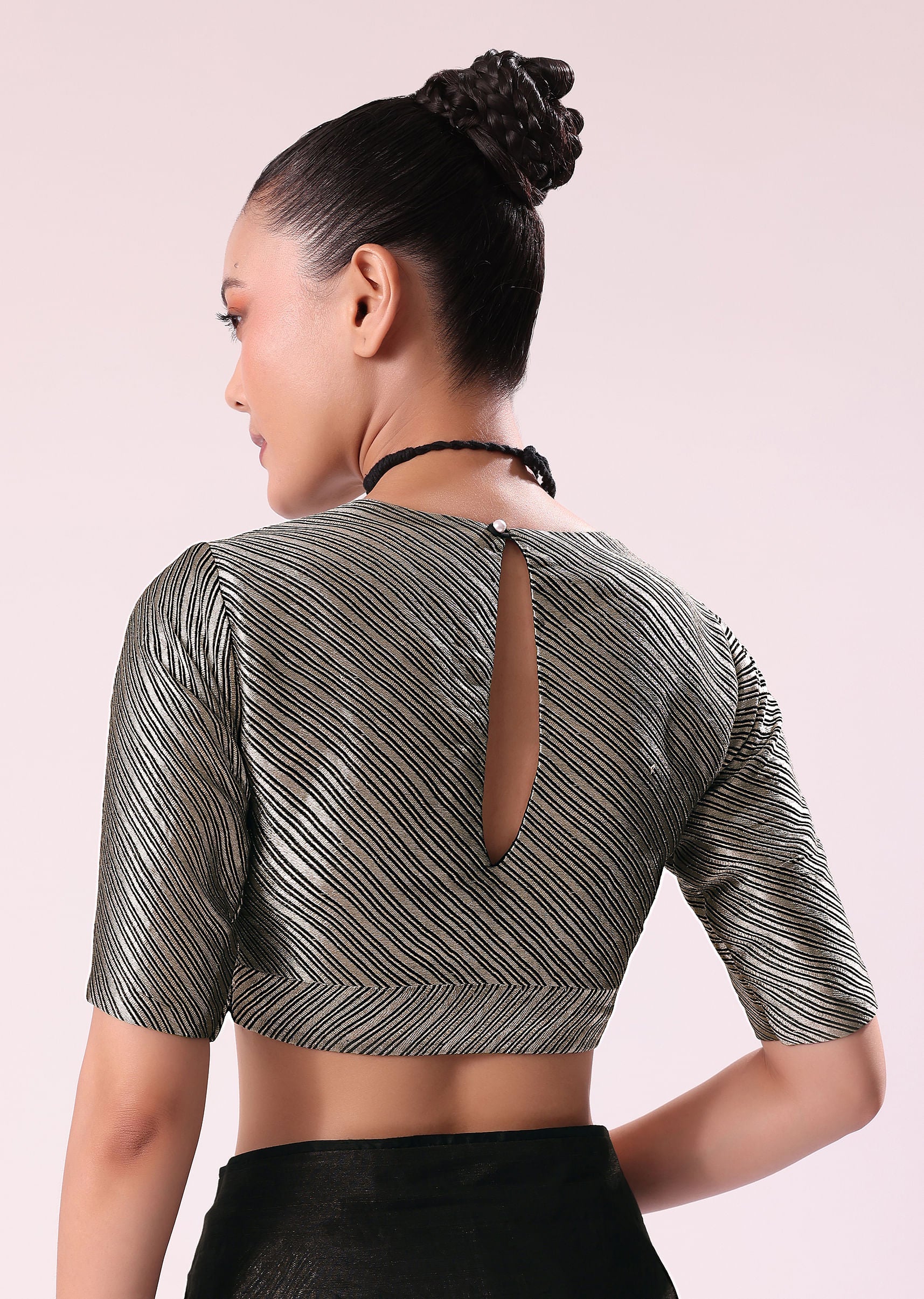 Black And Silver Half Striped Chanderi Saree And Stitched Blouse