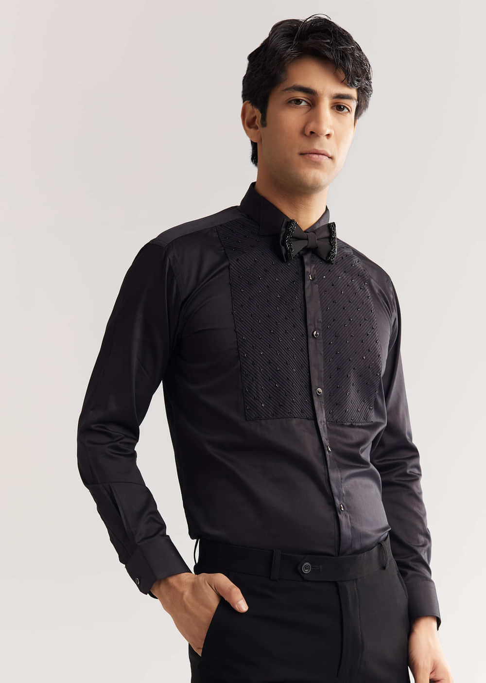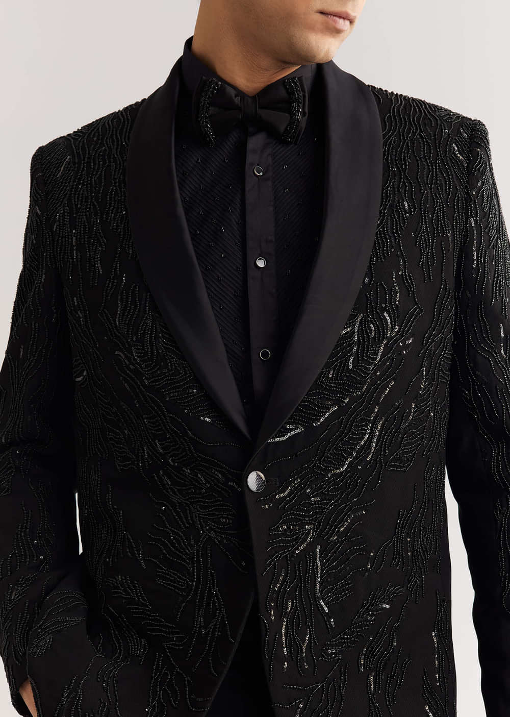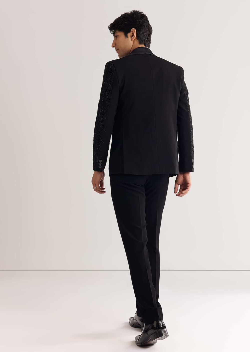Black Beads And Sequin Embroidered Tuxedo Suit