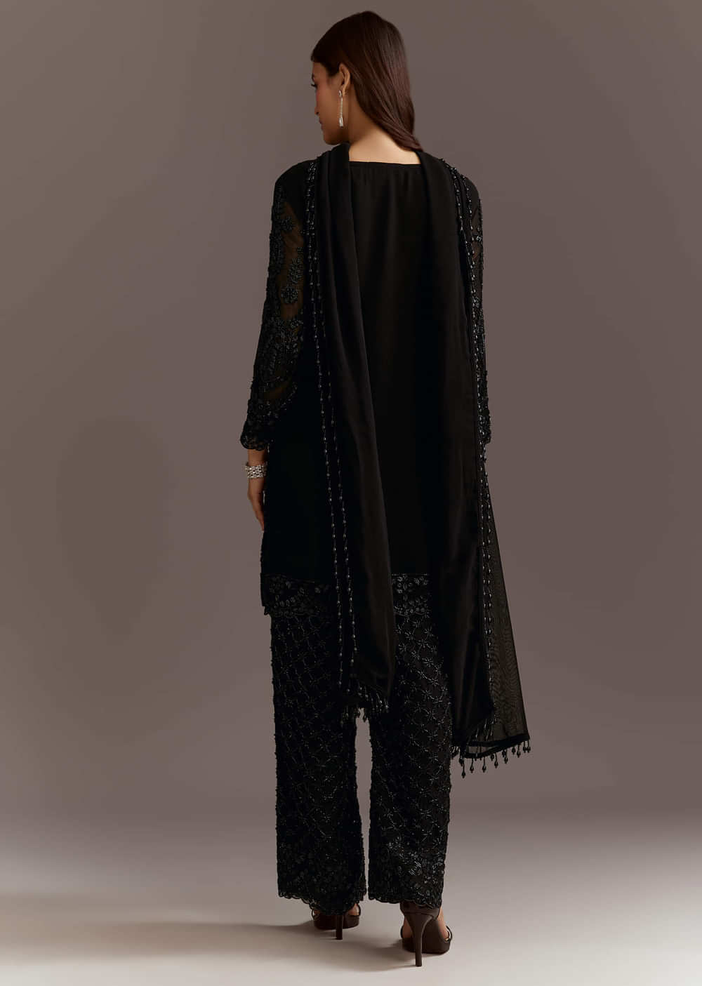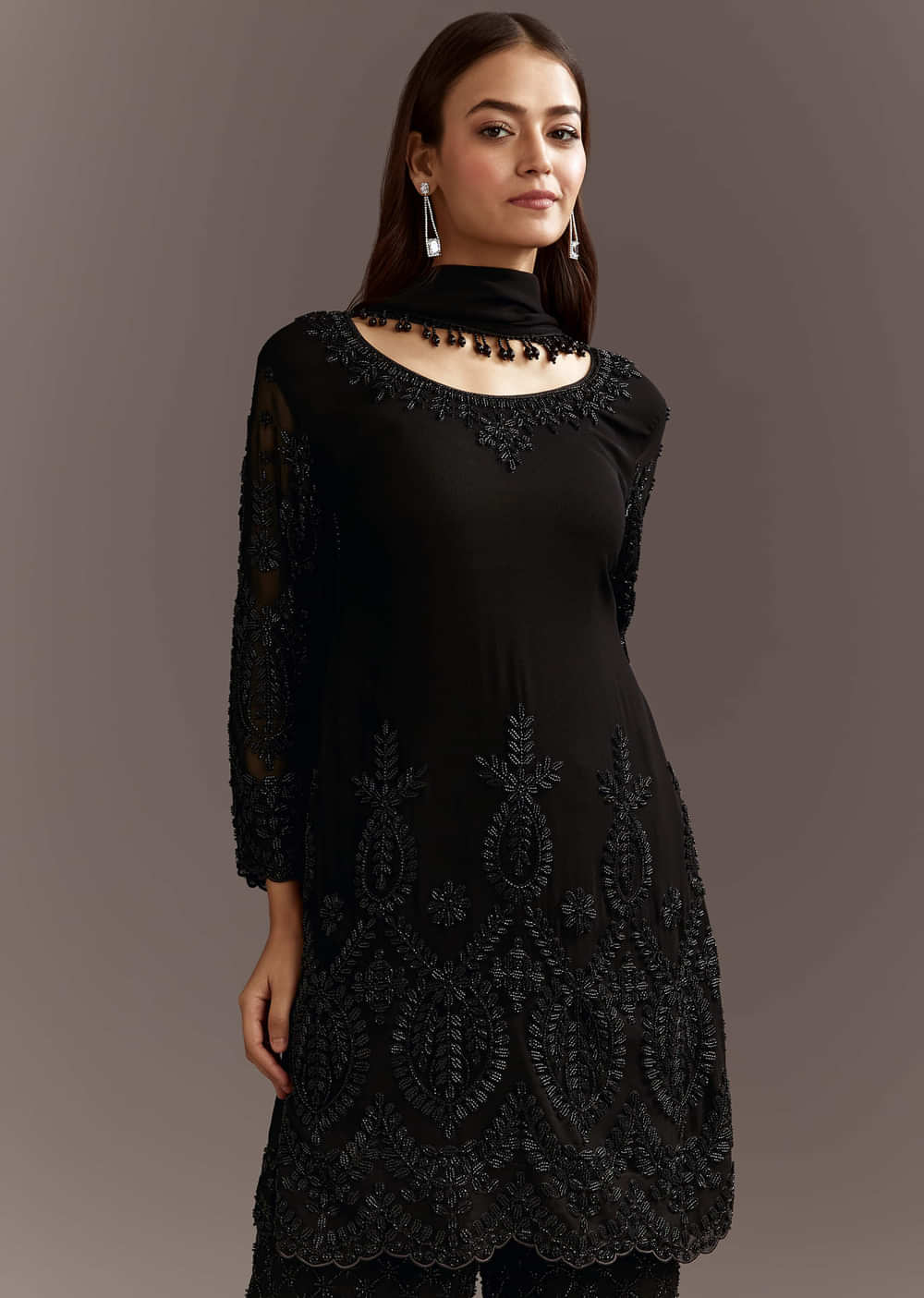 Black Beads Work Georgette Kurta With Fully Beaded Pant
