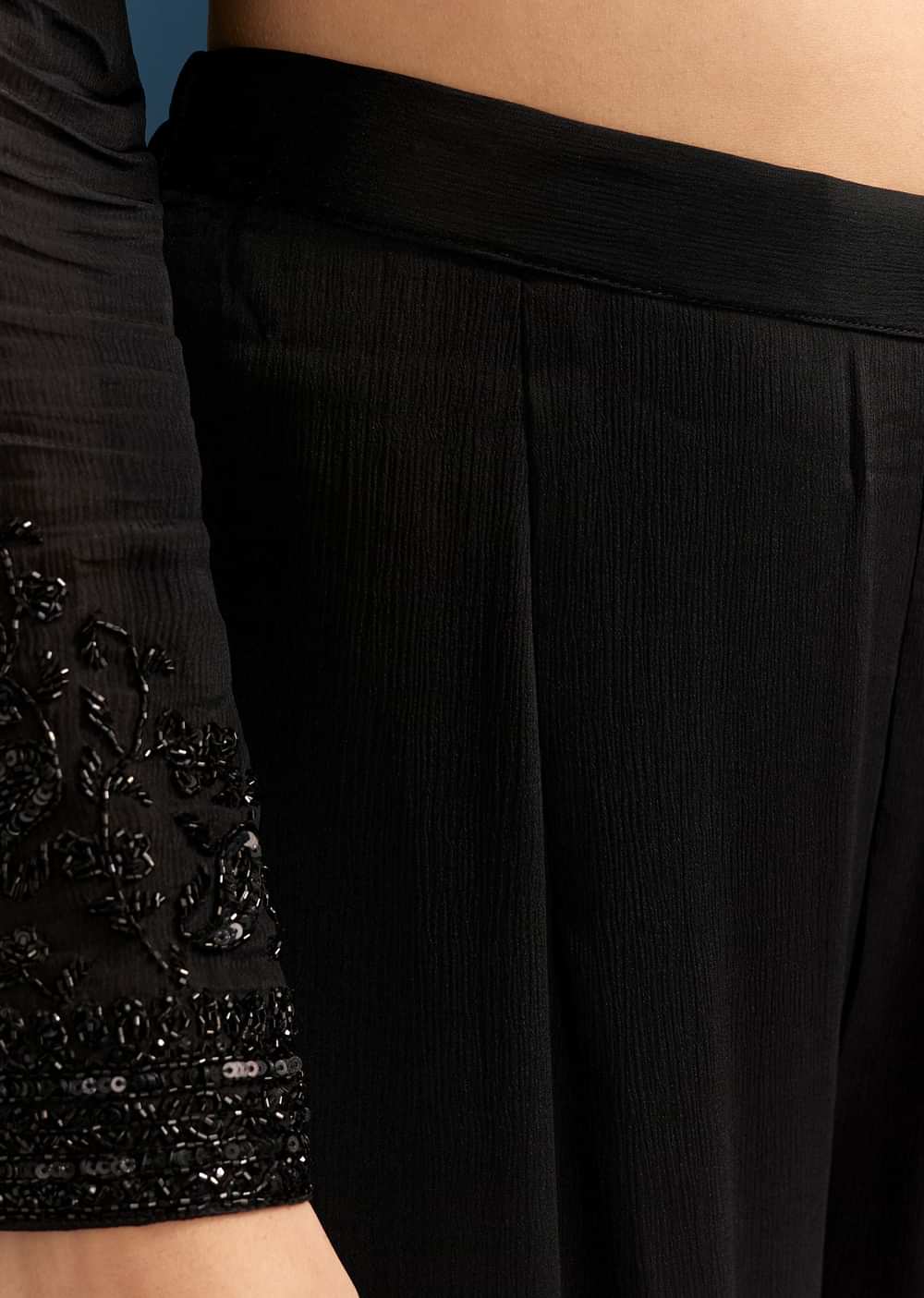 Graceful and understated, this black chinon kurta set features embroidery and sequin detailing, designed to elevate your festive or formal wardrobe with a soft glow. Awarded as the Most Trusted... More Product Details