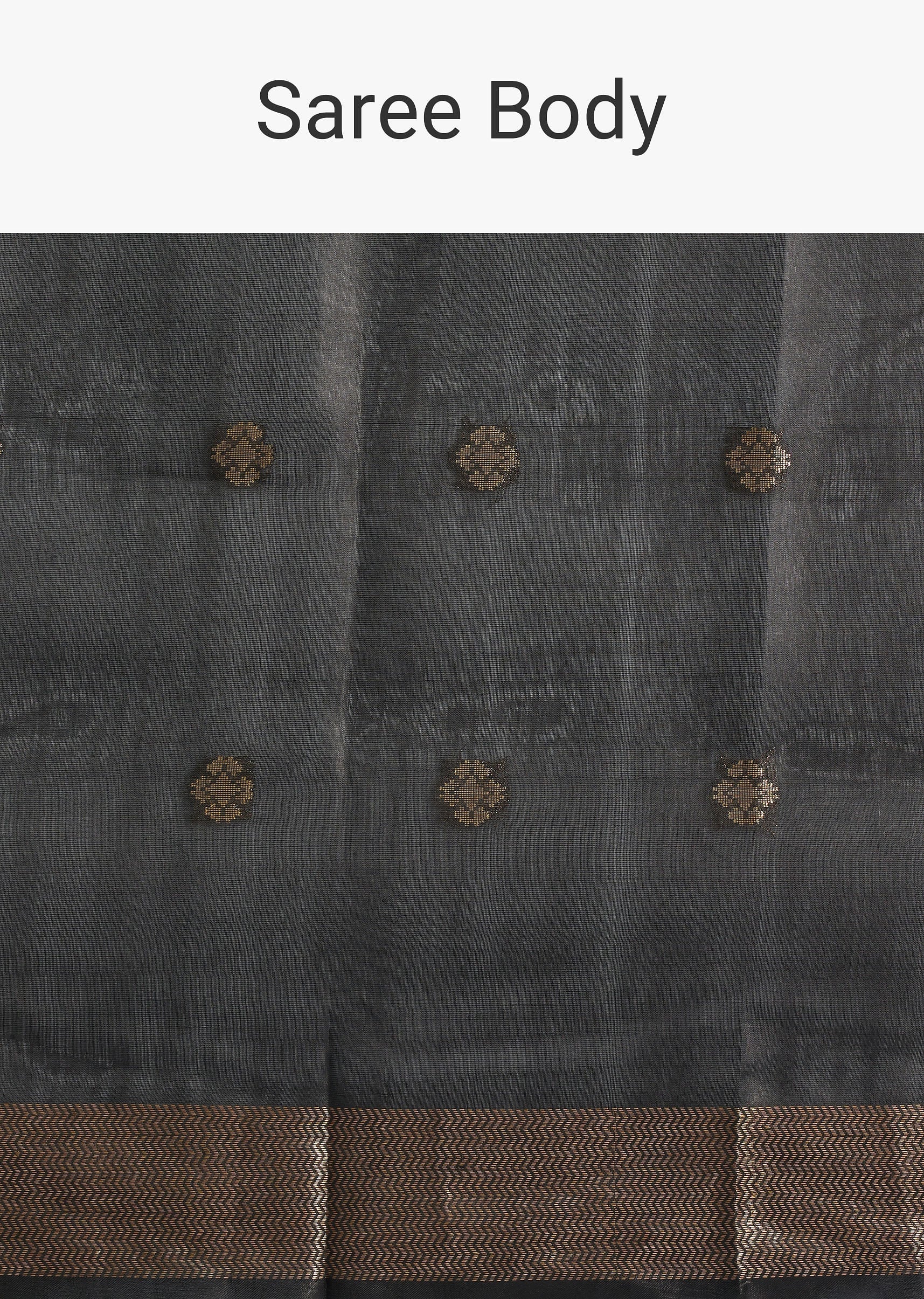 Black Colorblock Spun Silk Saree With Woven Butti Work