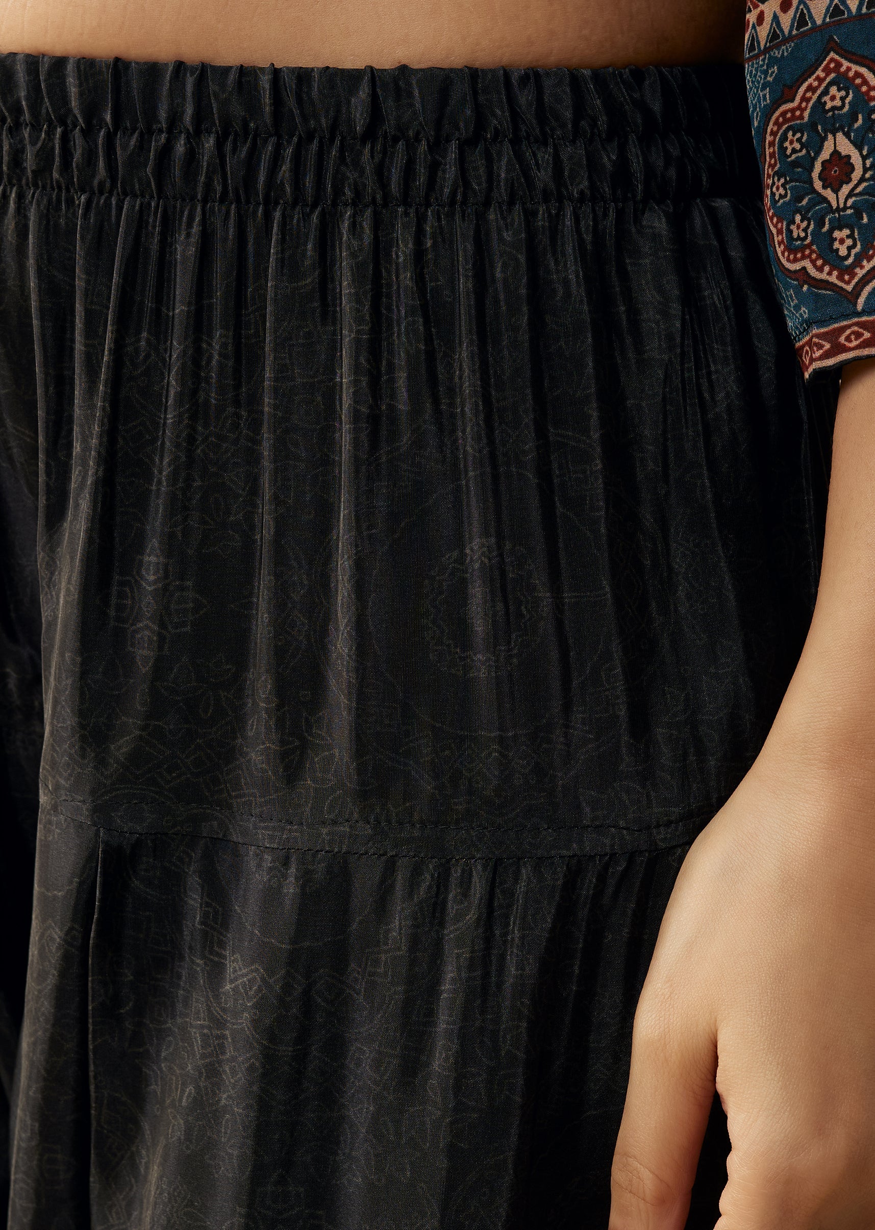 Refresh your ethnic wardrobe with this black crepe kurta set, featuring indie-inspired prints enhanced with delicate sequin detailing for a refined hint of sparkle. The lightweight crepe fabric offers a... More Product Details