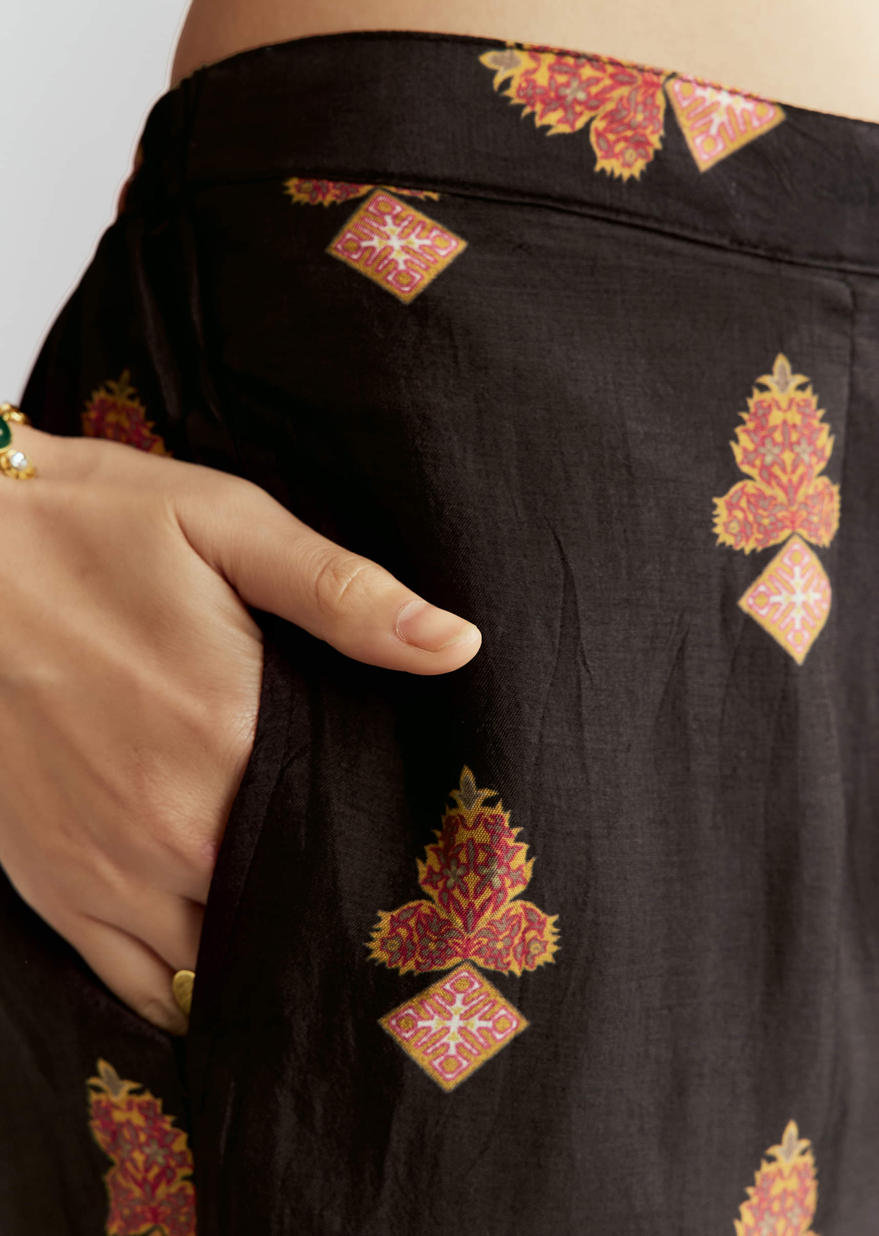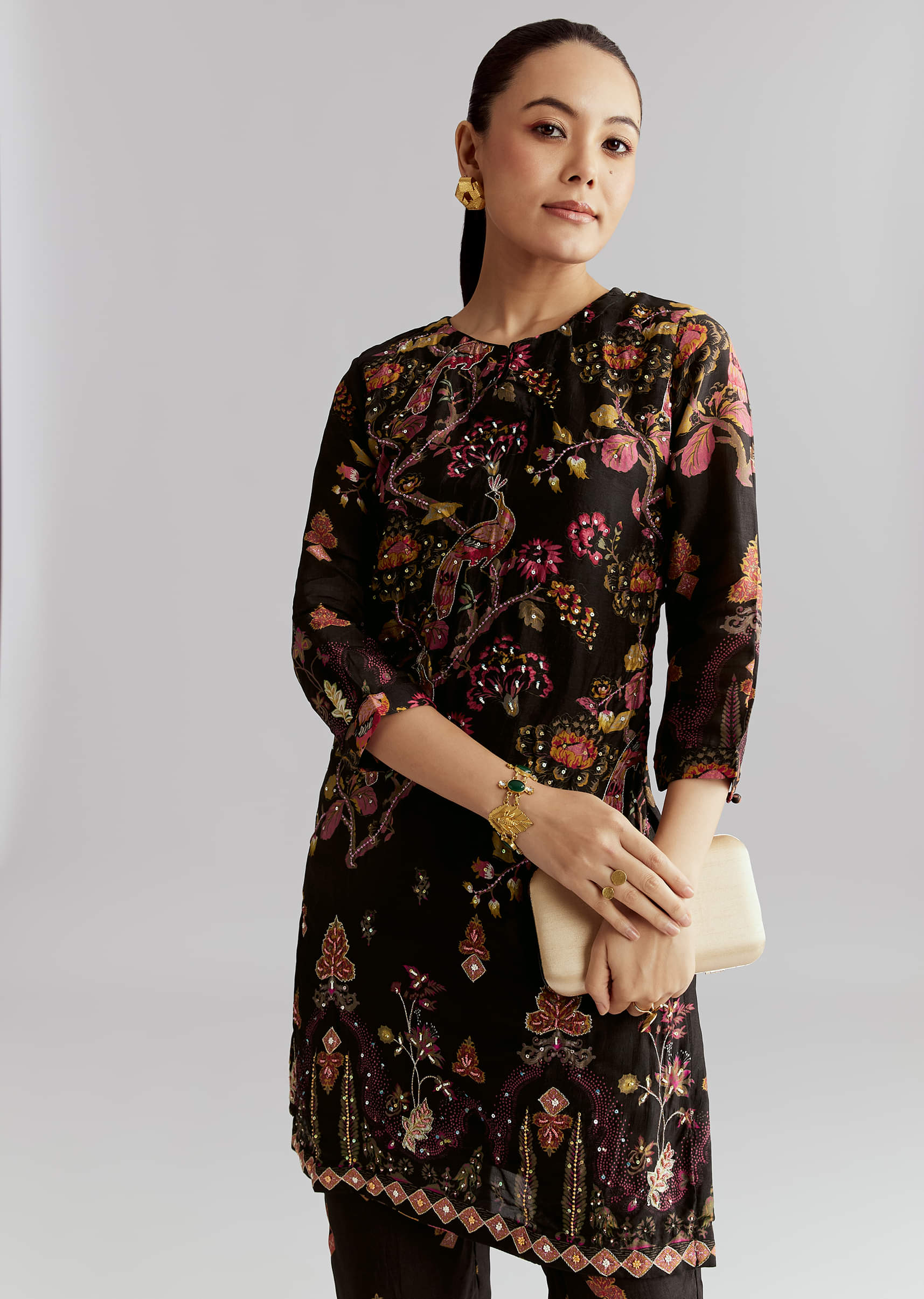 Black Crepe Printed Co Ord Set With Sequins And Beads Work