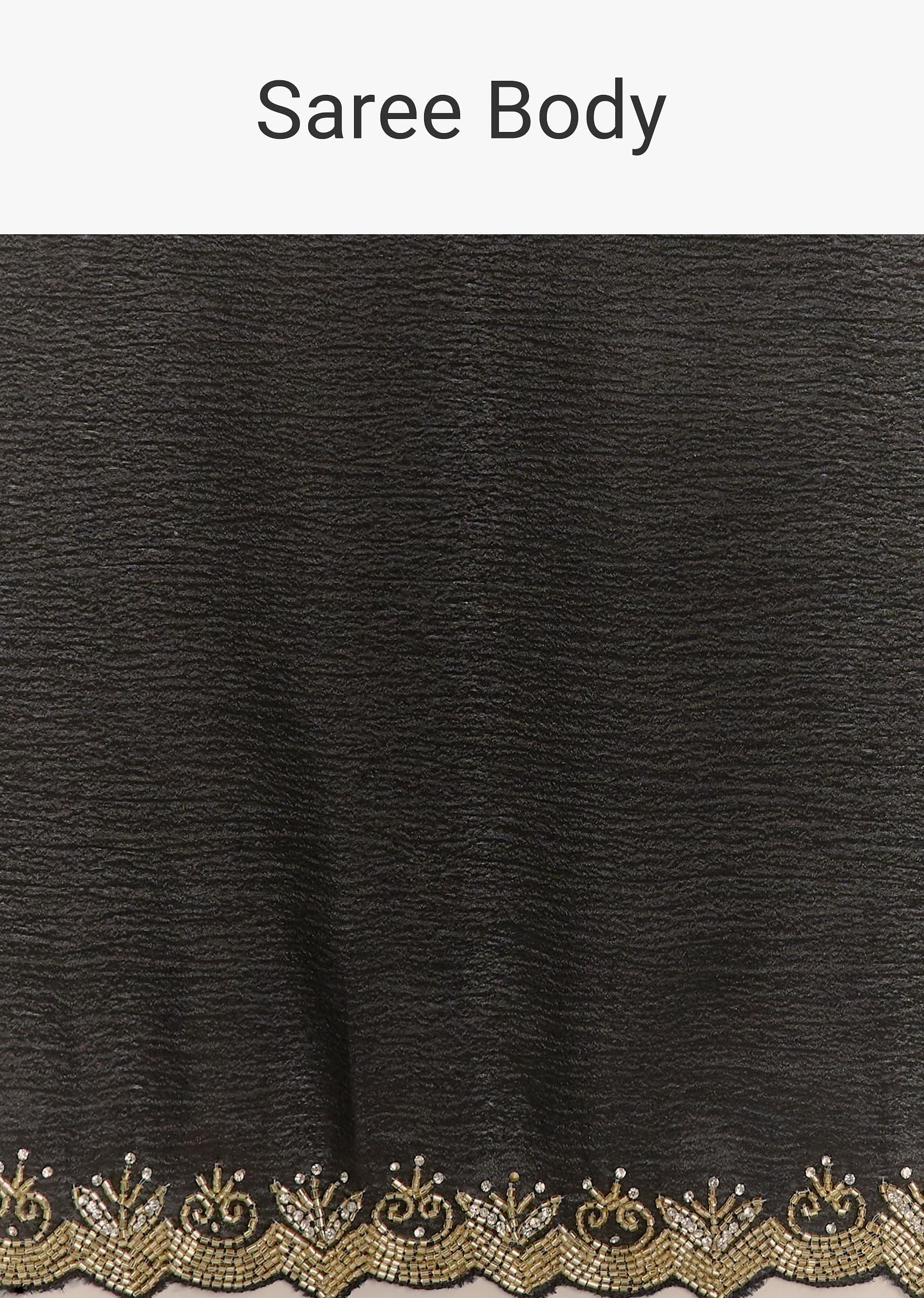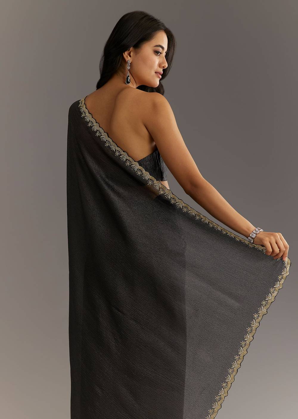 Black Crushed Tissue Saree With Scallop Embroidered Border