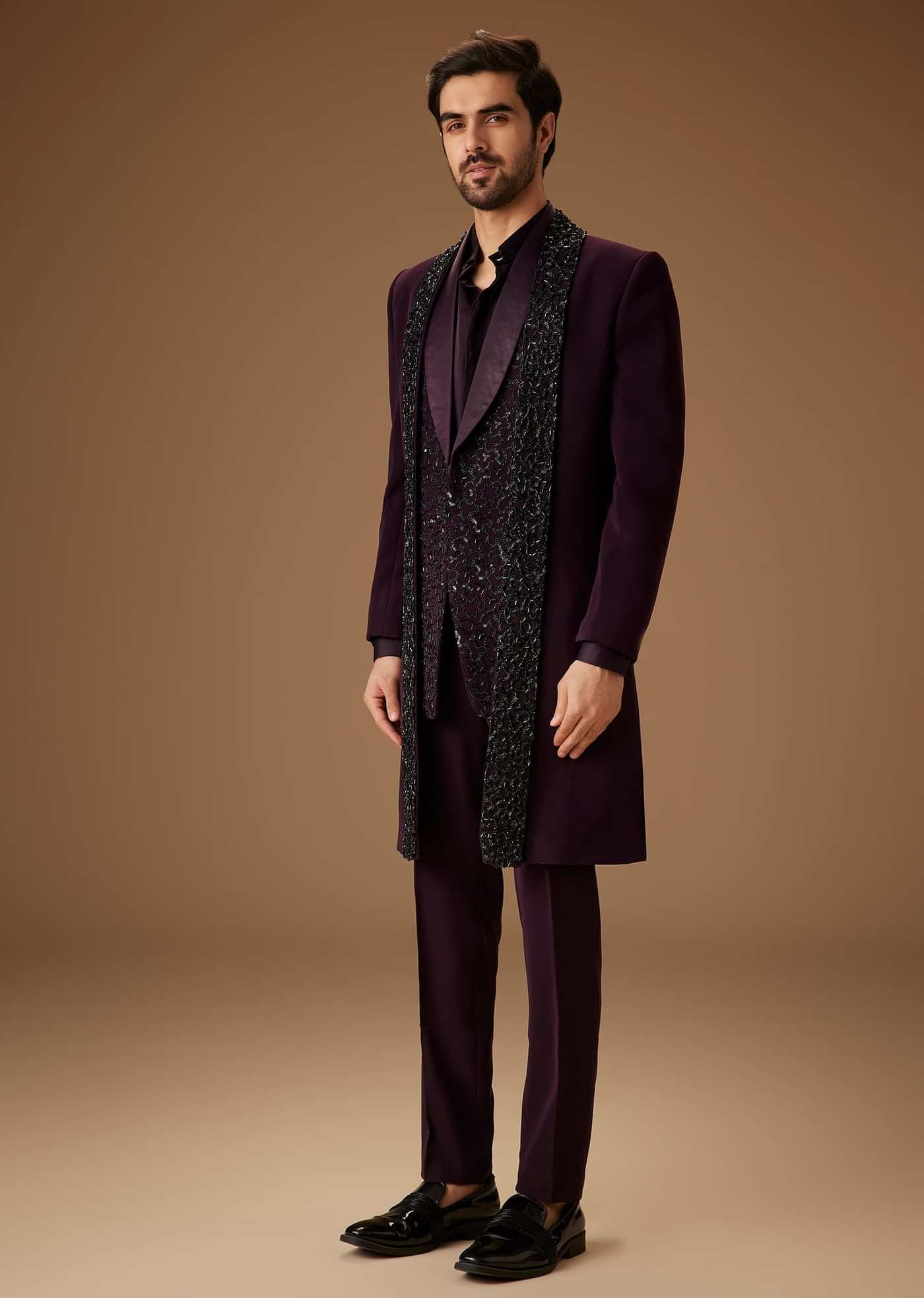 Black Cut Dana Work Indo Western Tuxedo