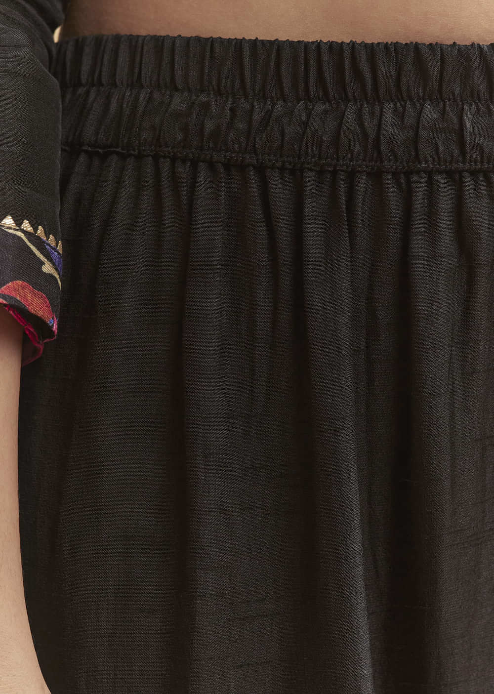 Tailored and evening-ready, this black dola silk kurta set balances a sleek front with a floral back that feels playful. Gota work trims the kurta cleanly so the silhouette stays... More Product Details