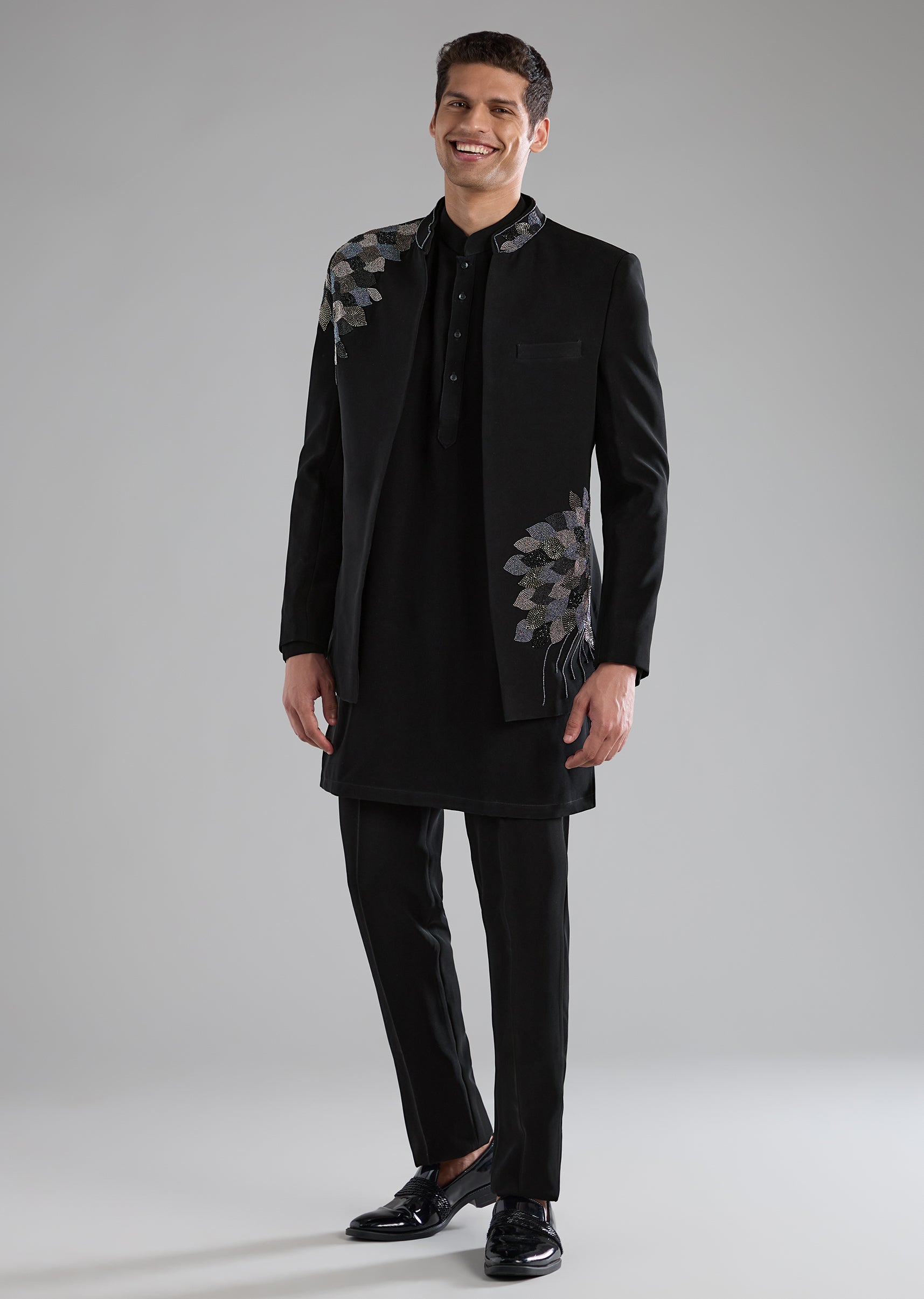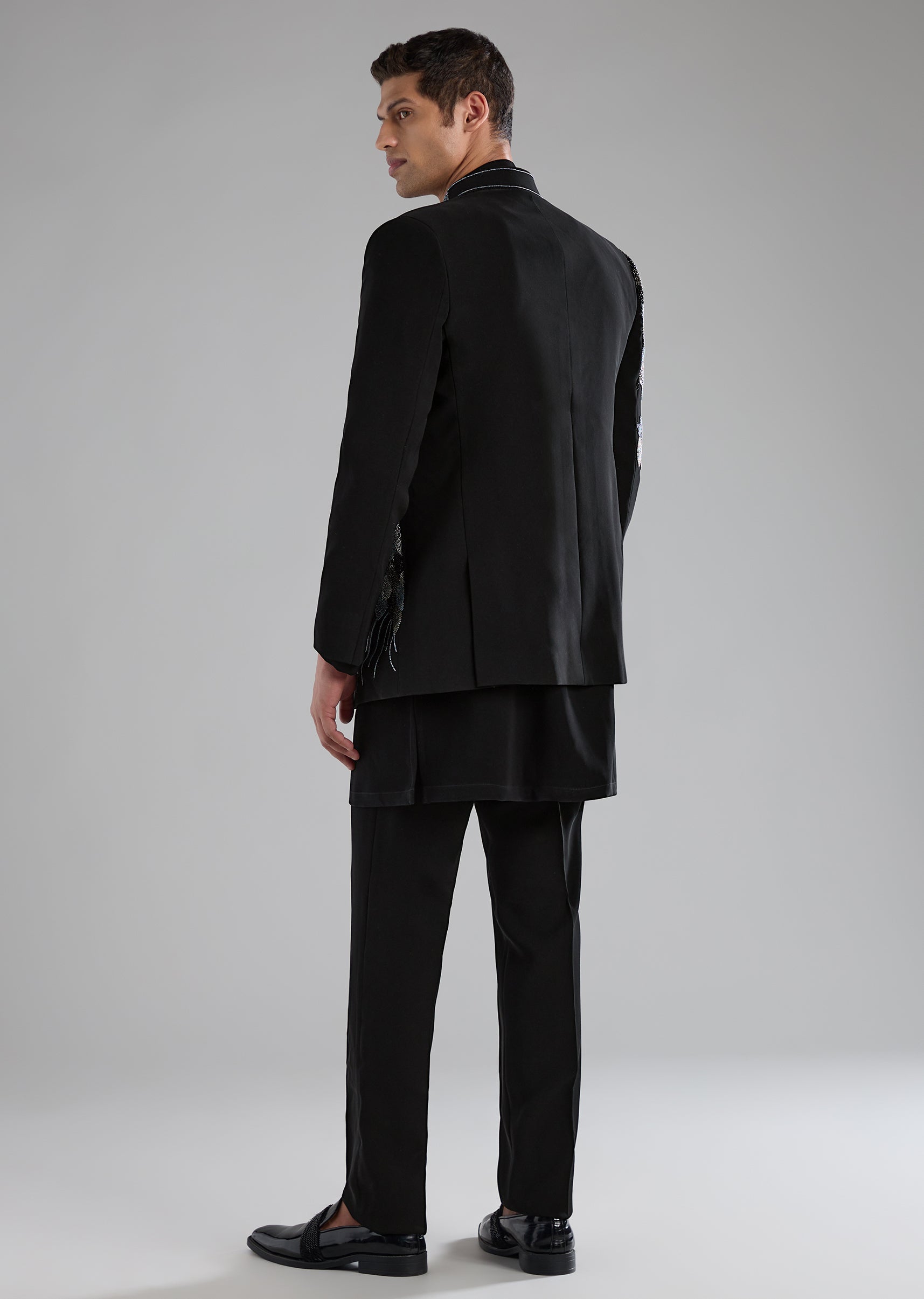 Black Embellished Jodhpuri Kurta Set with Resham Work