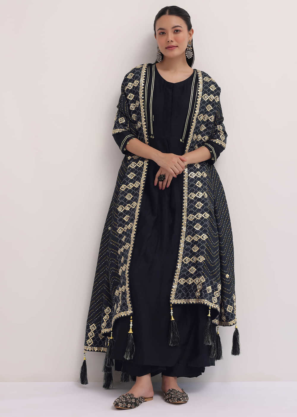Black Embroidered Chanderi Anarkali Set