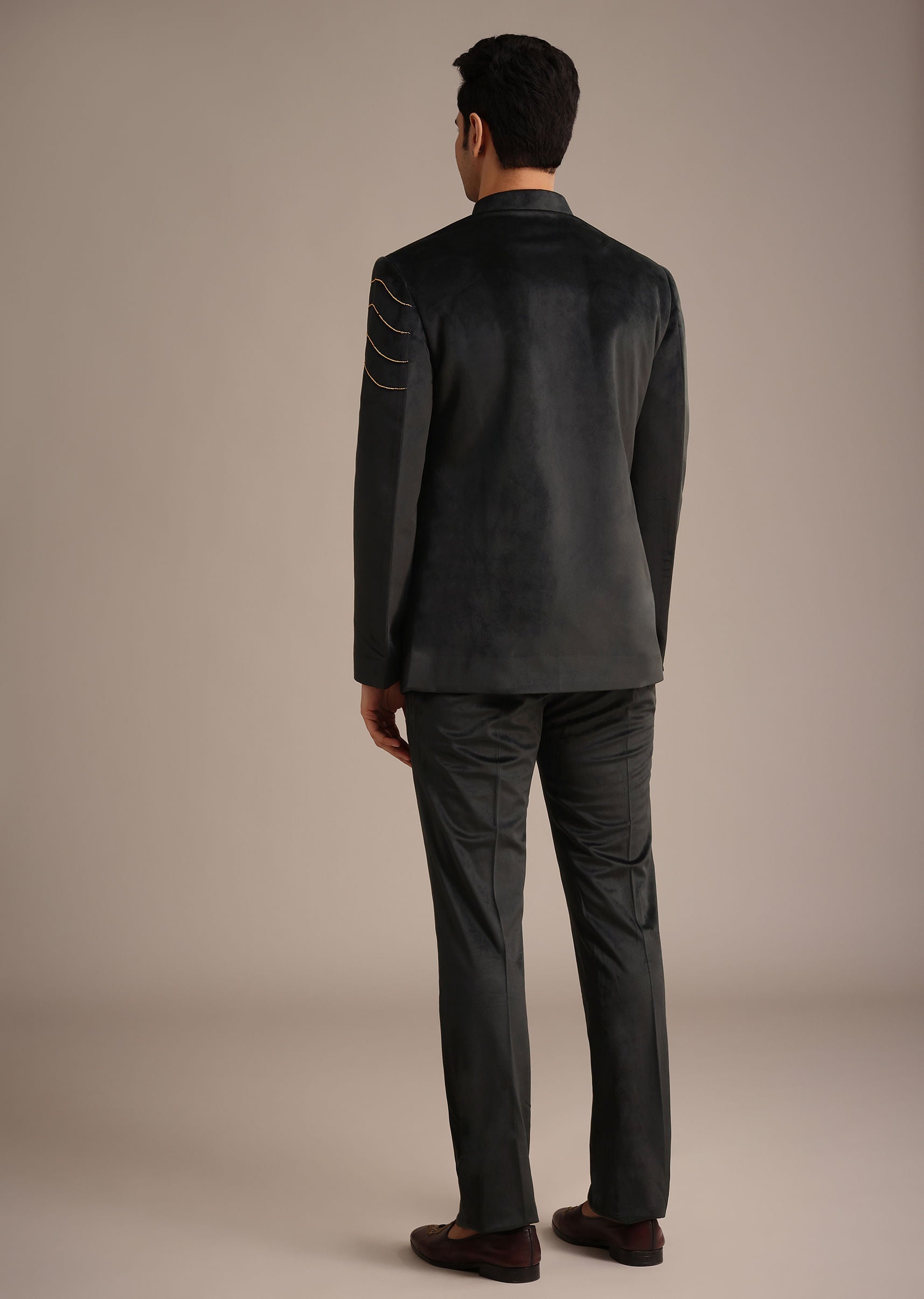 Black Embroidered Jodhpuri Set With Poth Work In Suede