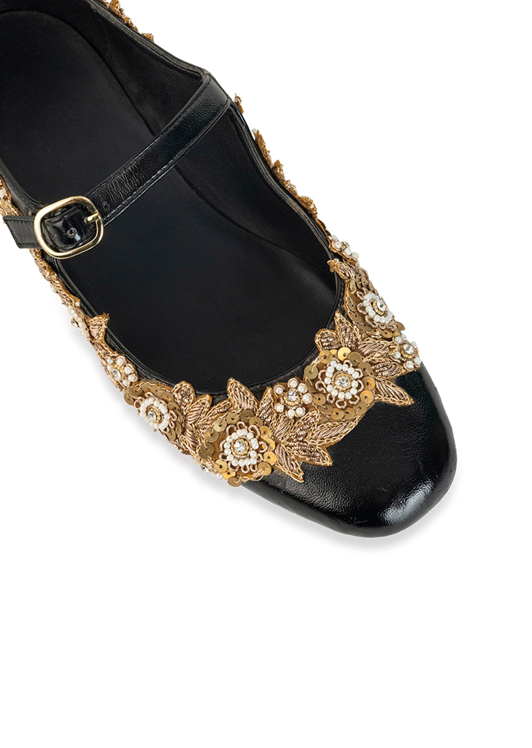 Black Floral Pearl Embellished Juttis