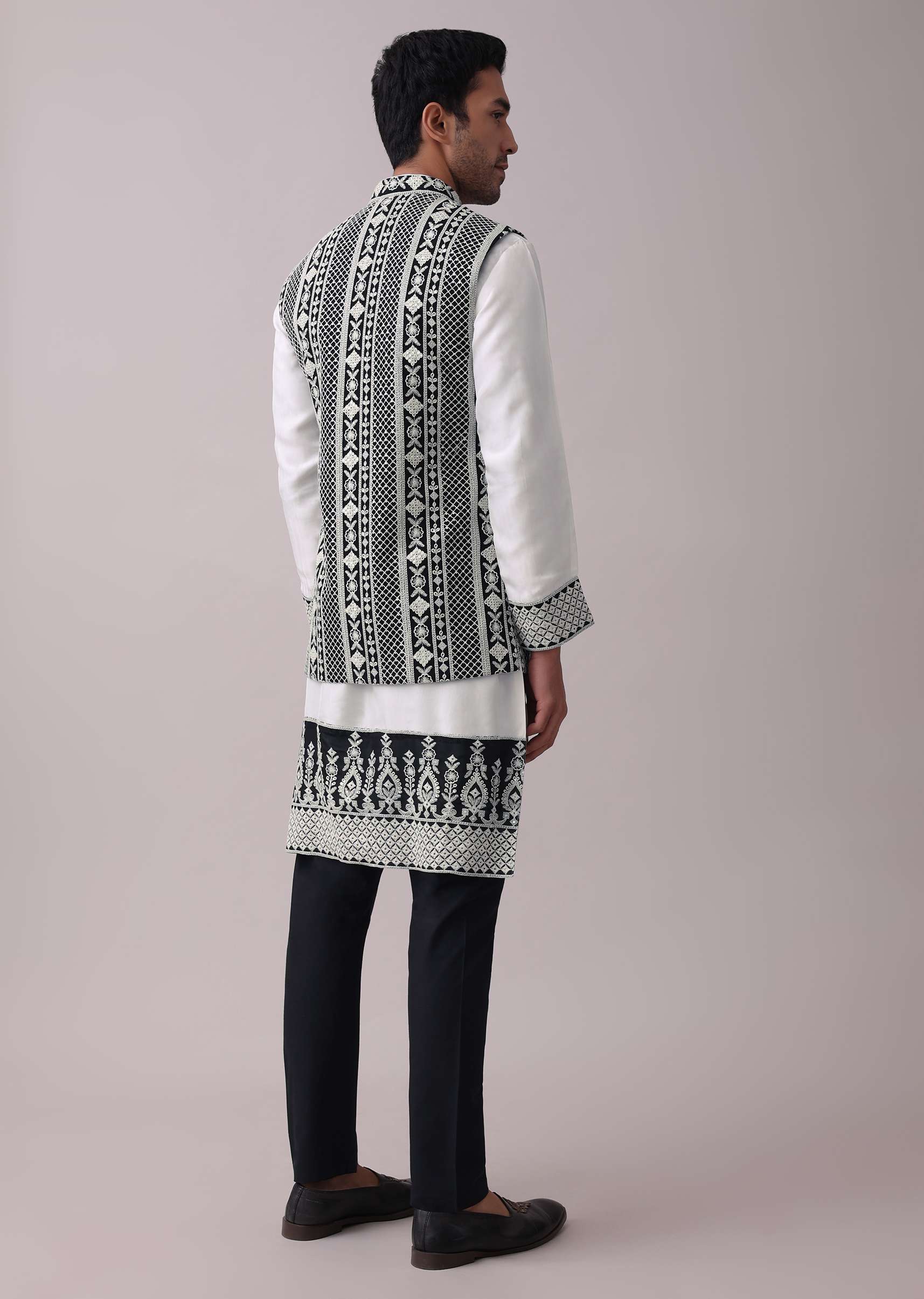 Black Four Piece Sherwani Set With Threadwork And Sequins Embroidery