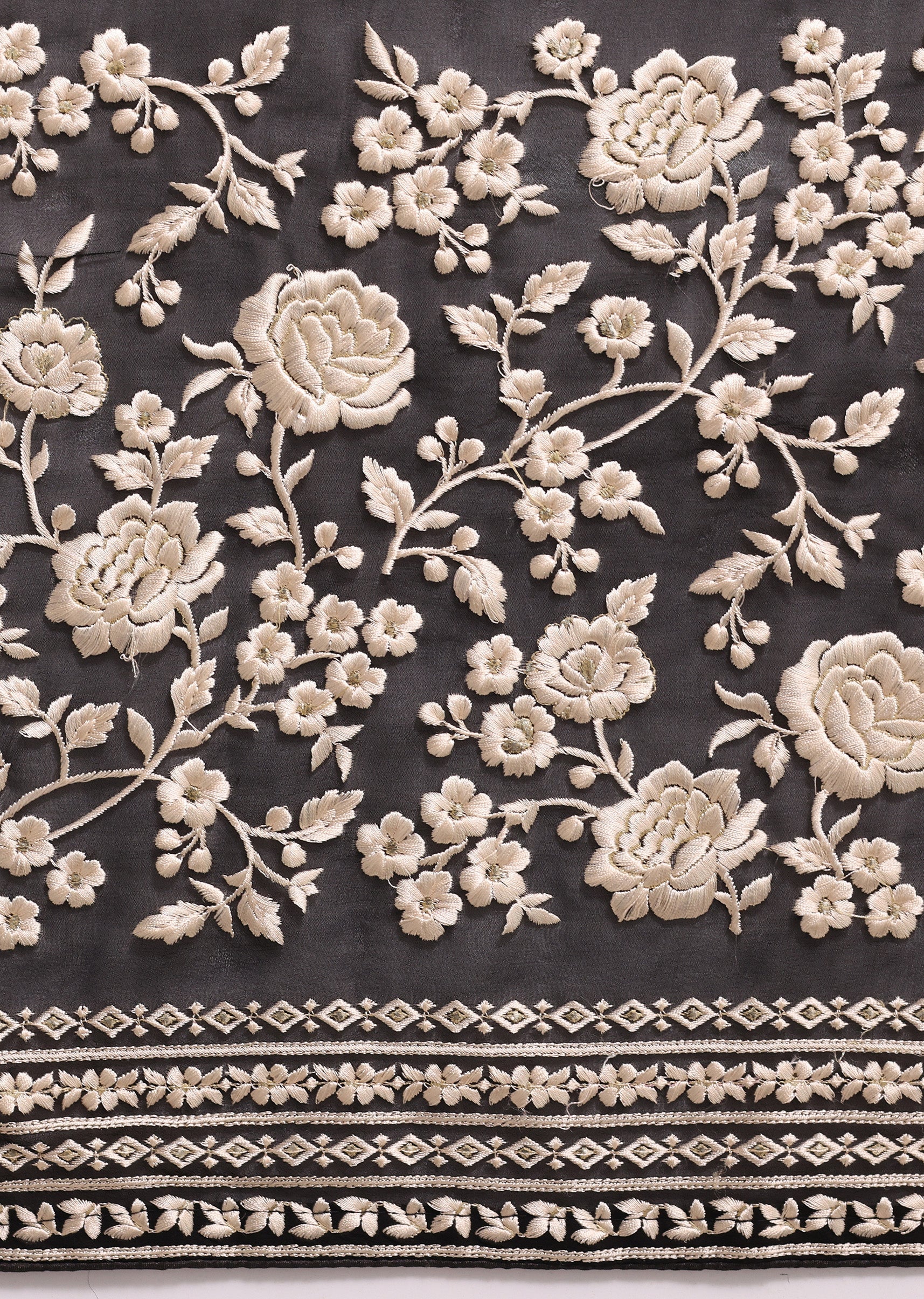 Immerse yourself in elegance with our black saree. This stunning saree is crafted from delicate georgette fabric and features intricate Parsi gara embroidery in a captivating all-over floral design. The embroidery is meticulously done with resham thread, adding a touch of elegance and luxury. Ideal for special occasions and parties. The saree is paired with an unstitched blouse. Awarded As The Most Trusted Brand We'Re Delivering Styles You Love Just As Promised.