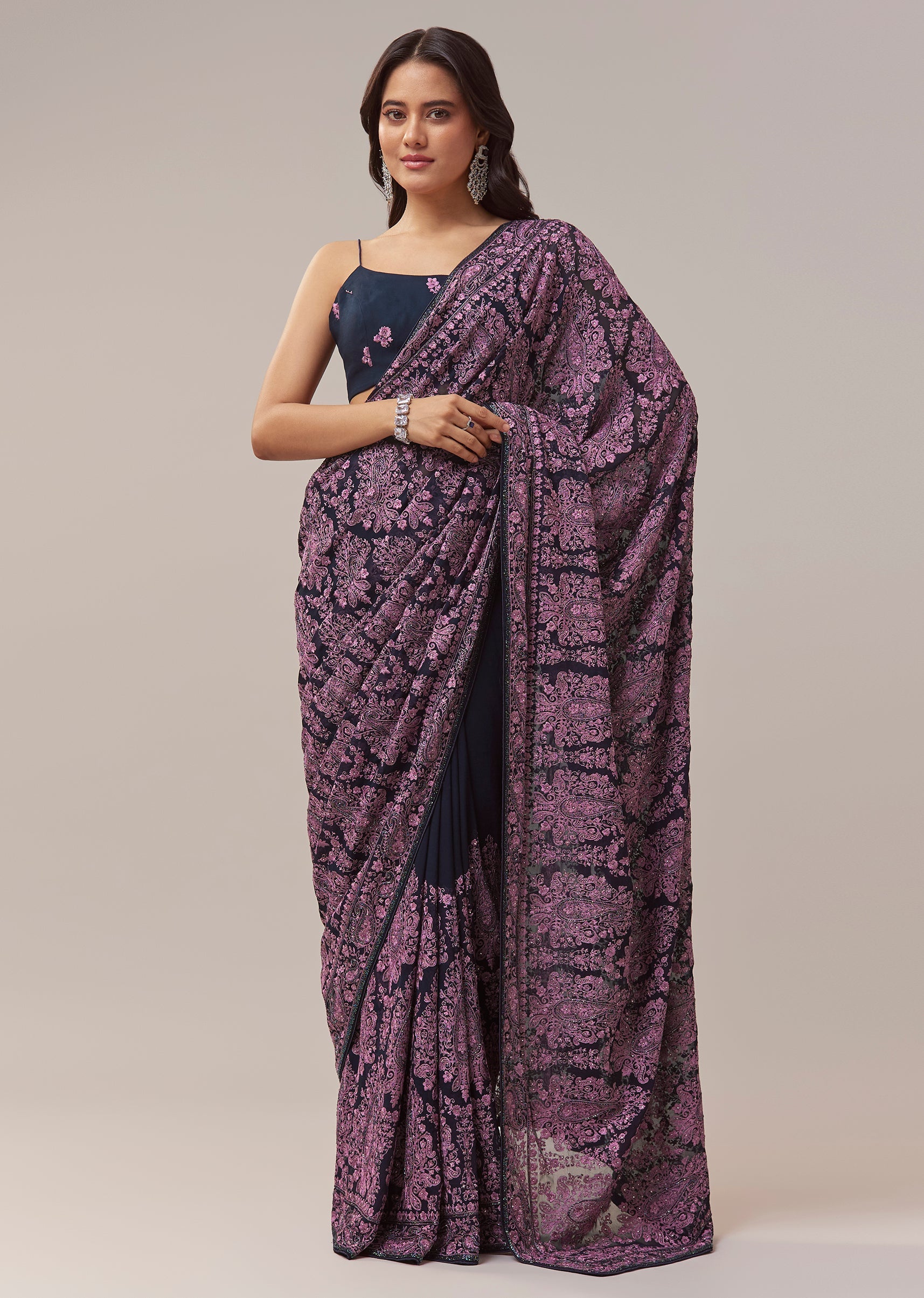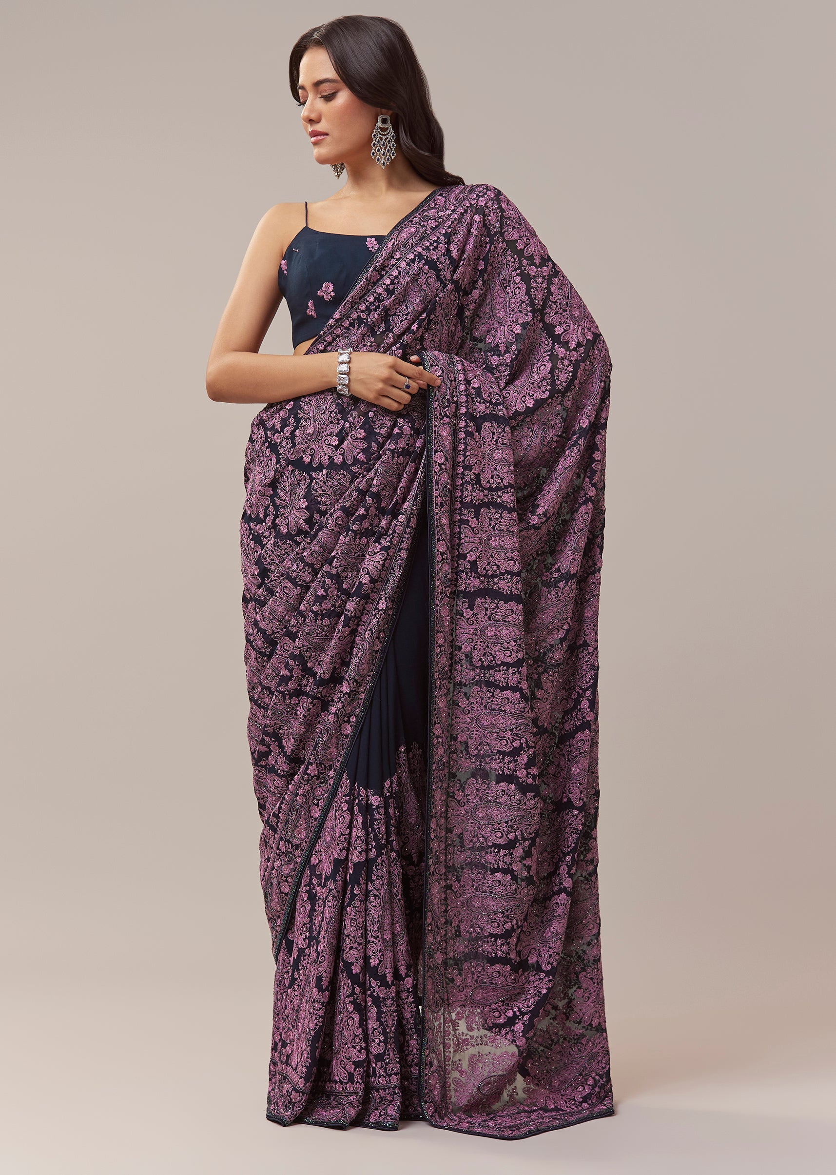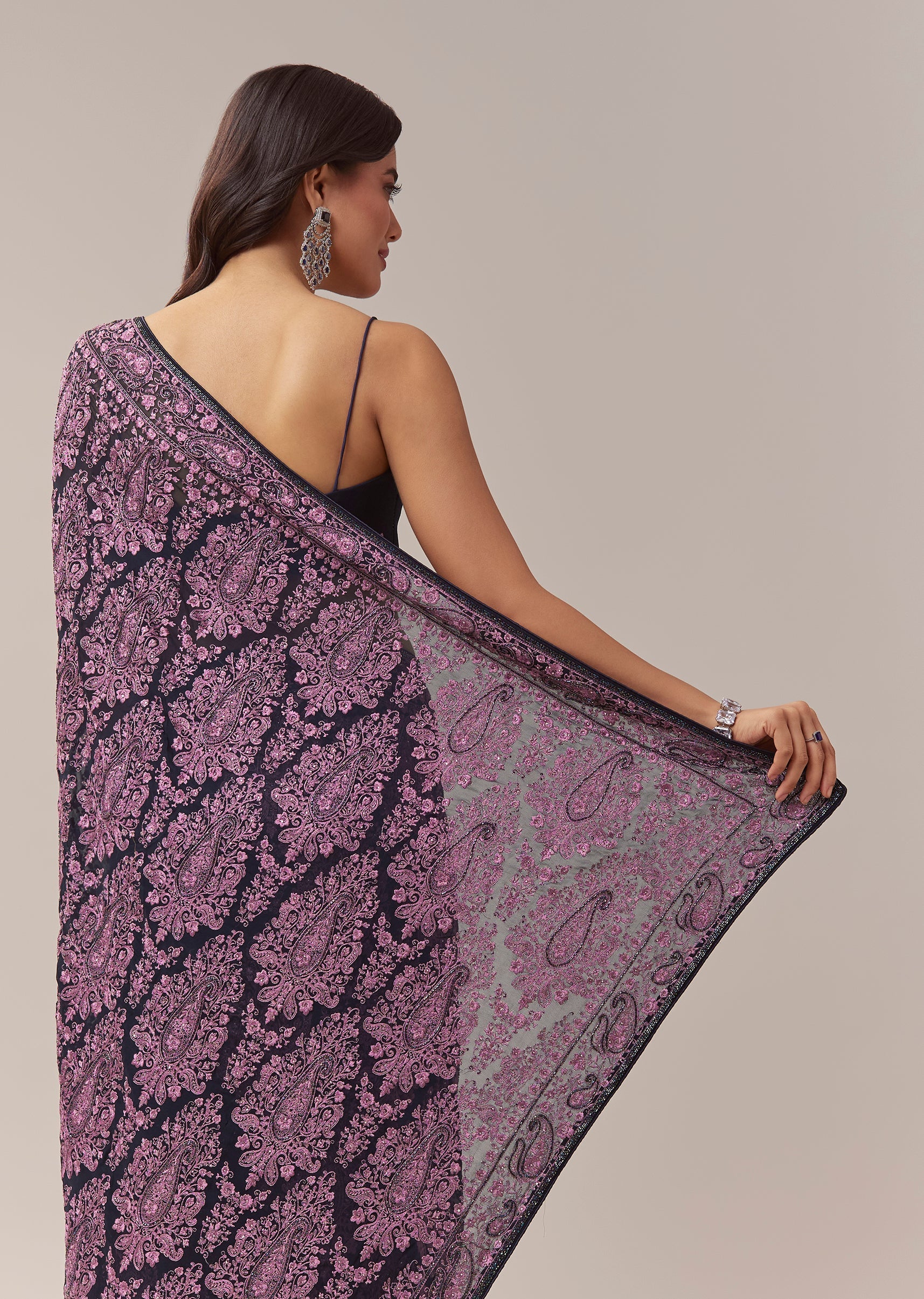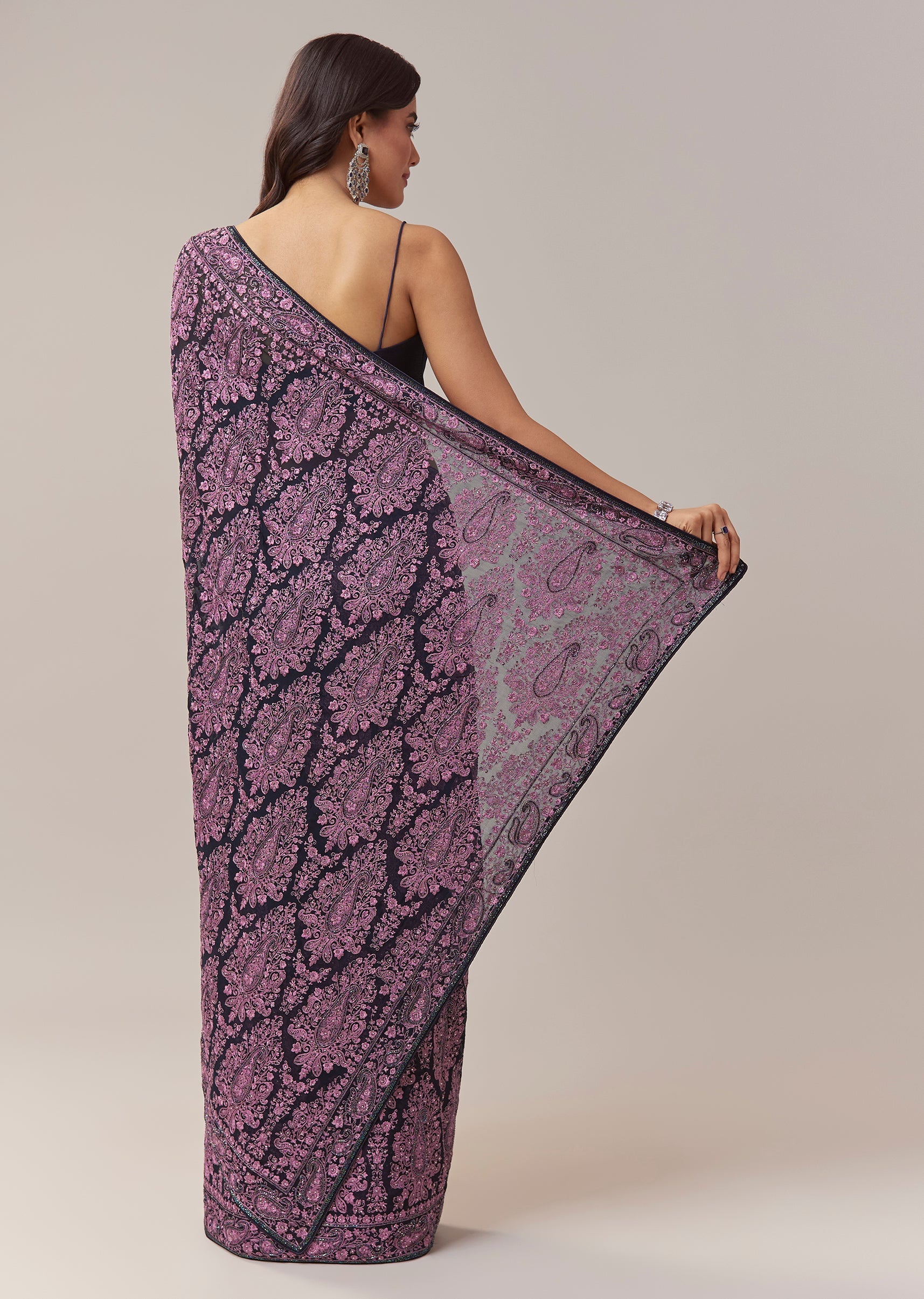 Black Georgette Saree With Kashmiri Kashida Embroidery And Cutdana Border