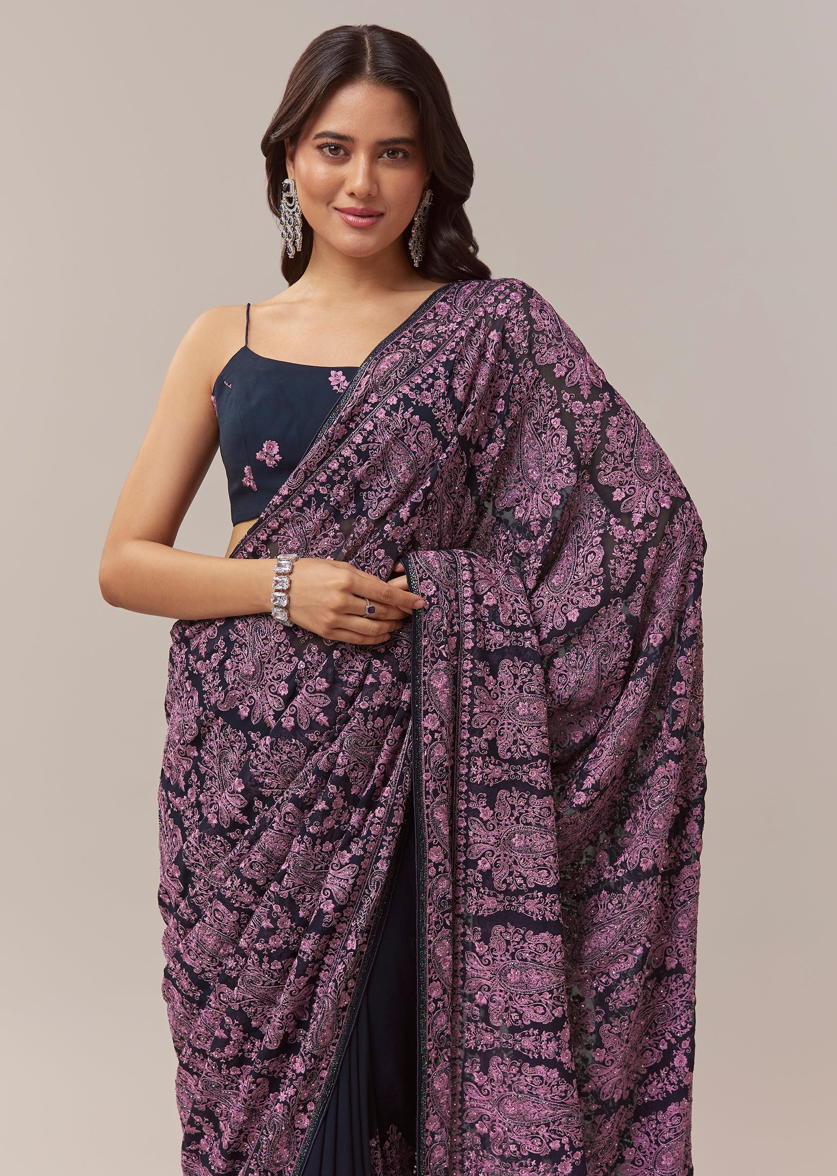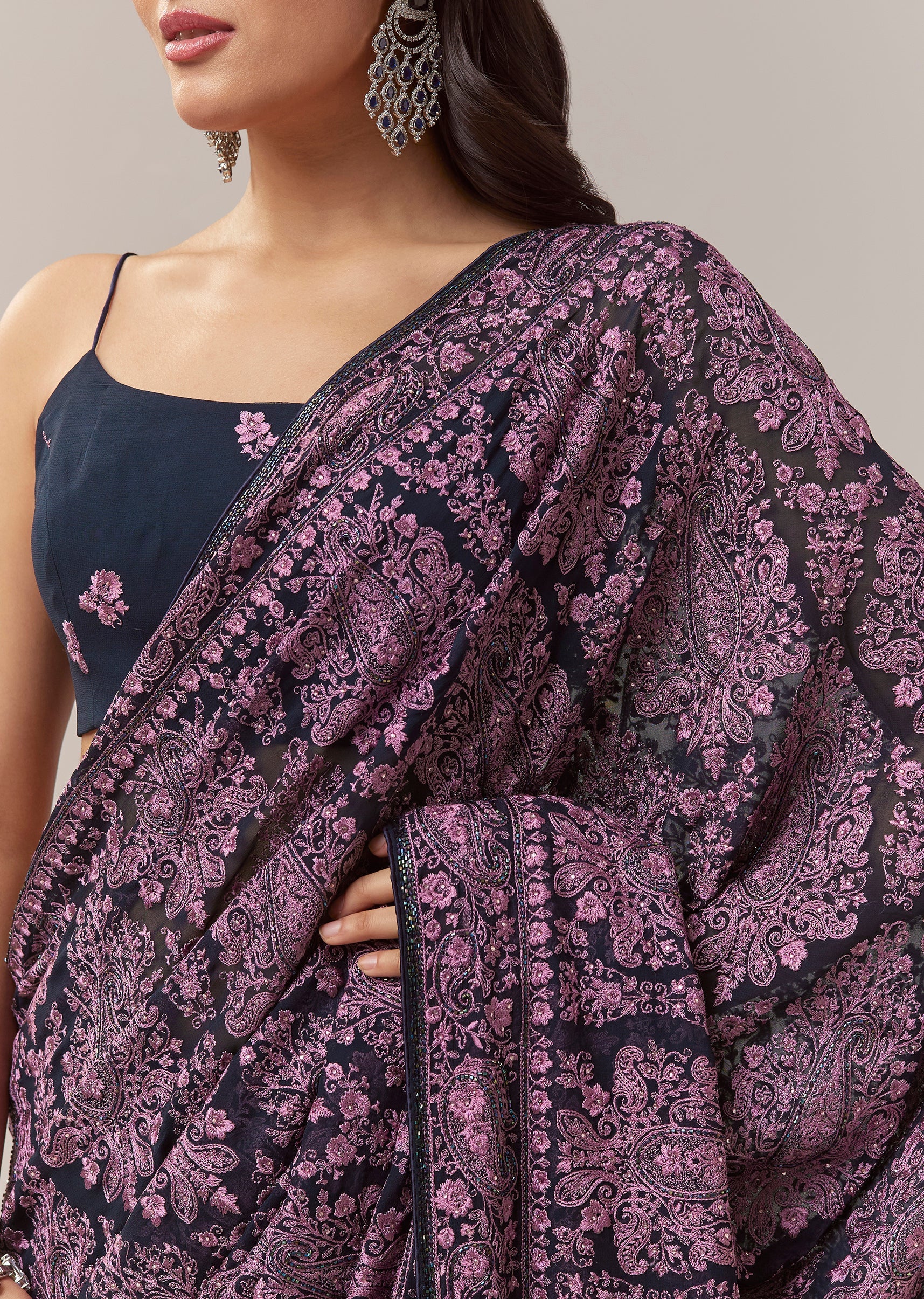 Fit Tips:Ensure the georgette drapes smoothly across the shoulder and falls evenly for a polished and elegant silhouette.