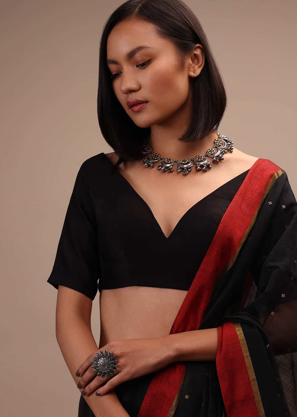 - Be your own muse by pairing it up with a kolhapuri neckpiece and an oxidized ring.