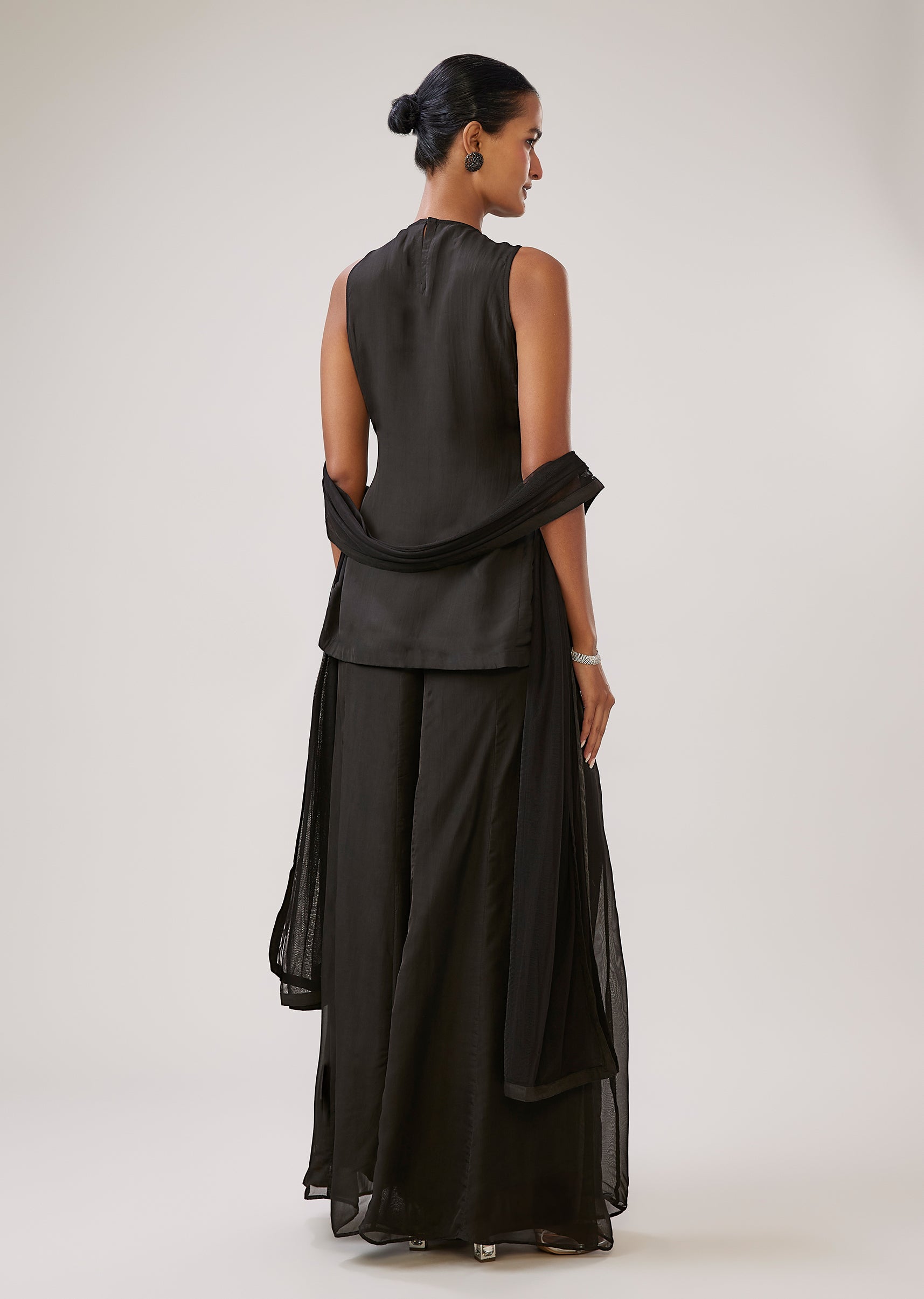 Black Illusion Neck Thread Work Palazzo Set With Dupatta