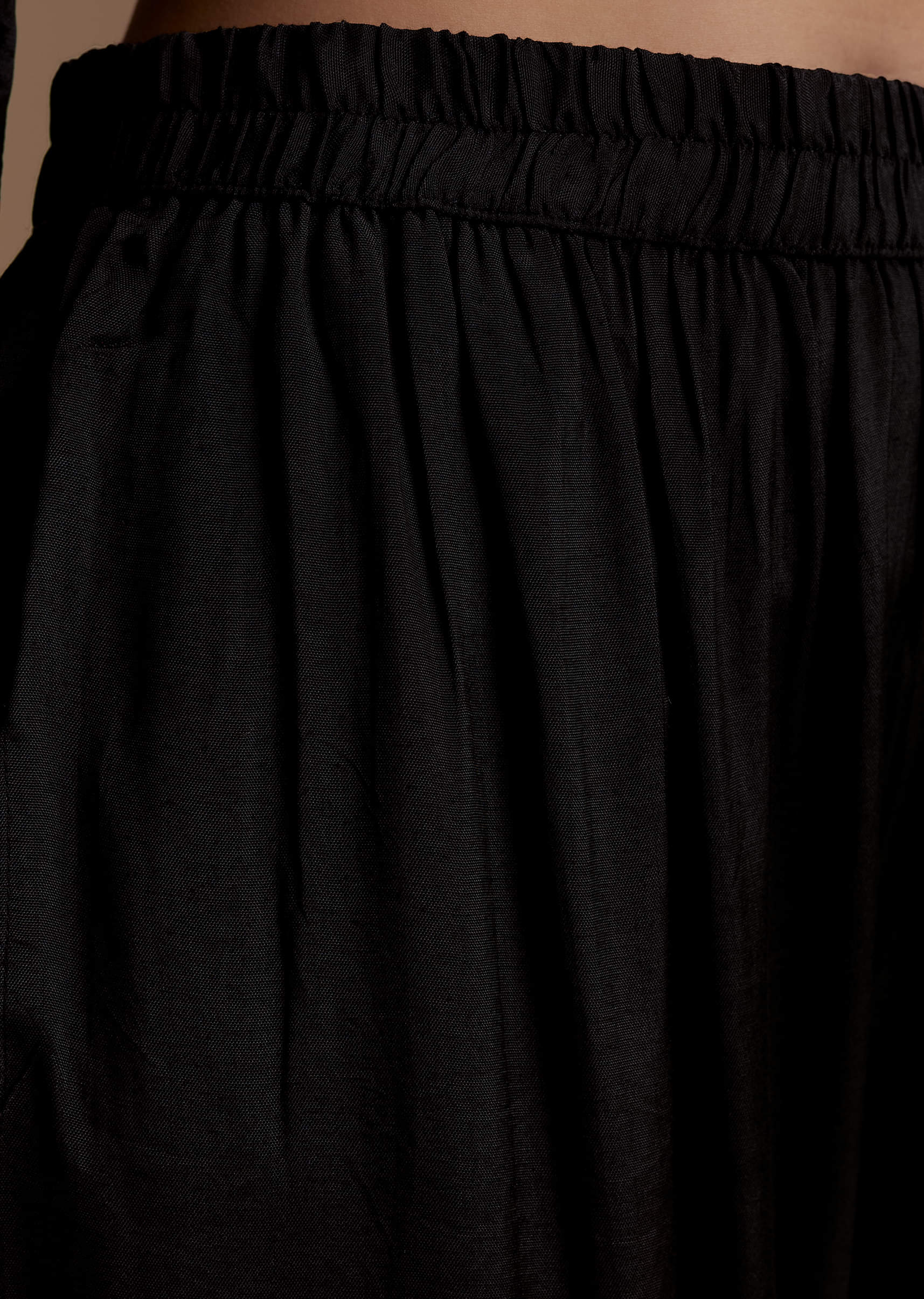 Embrace the spirit of festivity with this tonal black kurta set, thoughtfully designed for sangeet evenings and sparkly celebrations. Crafted from lustrous crepe, the kurta showcases delicate stone embellishments along... More Product Details