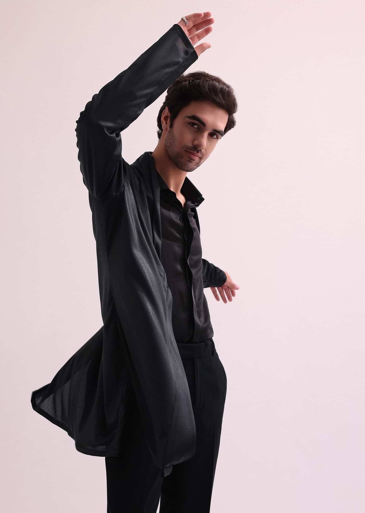 Black Indo Western Lapel Jacket With Shirt And Pant