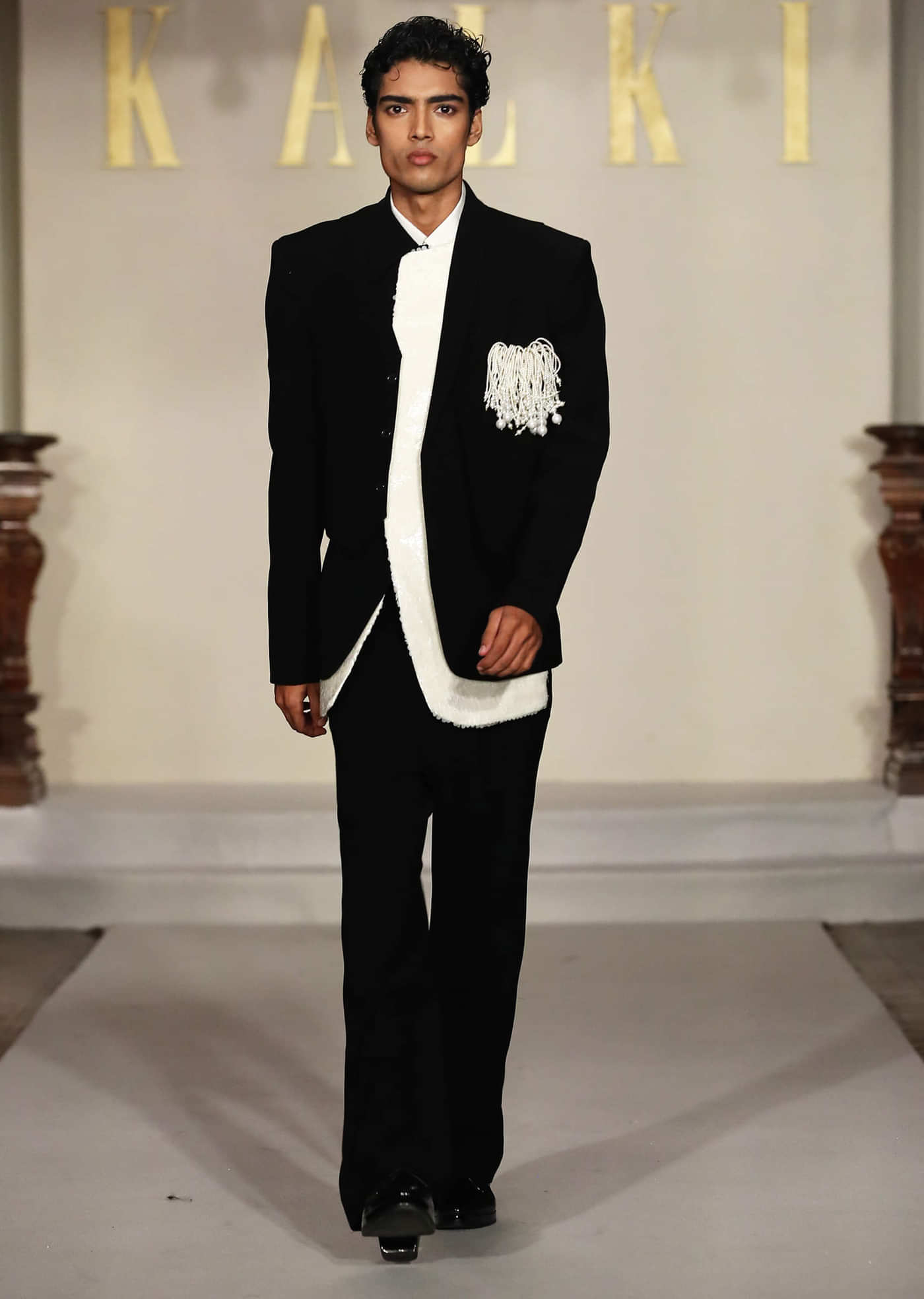 Monochrome impact defines this black and white Indo western set for men. Anchored by a one-side flap blazer with pearl and bead accents, it is paired with straight pants and... More Product Details