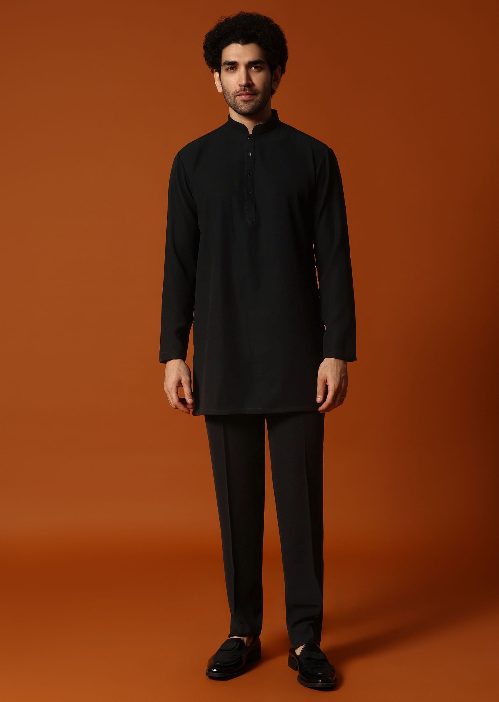Dive into the timeless elegance of our black Jodhpuri suit set, specially crafted for sangeet and wedding occasions. Crafted on a polyester base, this set is embellished with intricate resham work. The Jodhpuri ensemble consists of a bandi, a kurta, and bottoms. Awarded as the Most Trusted Brand, we're delivering styles you love, just as promised.