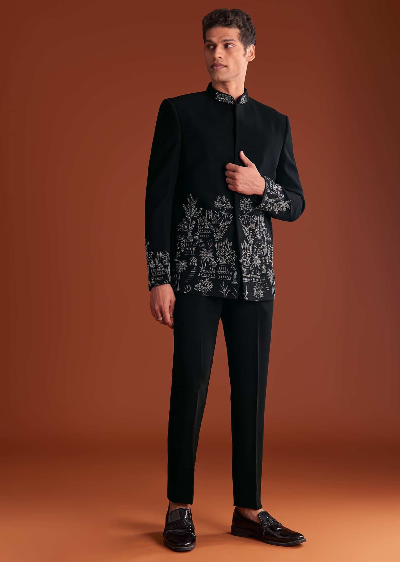 Black Jodhpuri Suit In Lachkaa With Hand Embroidery