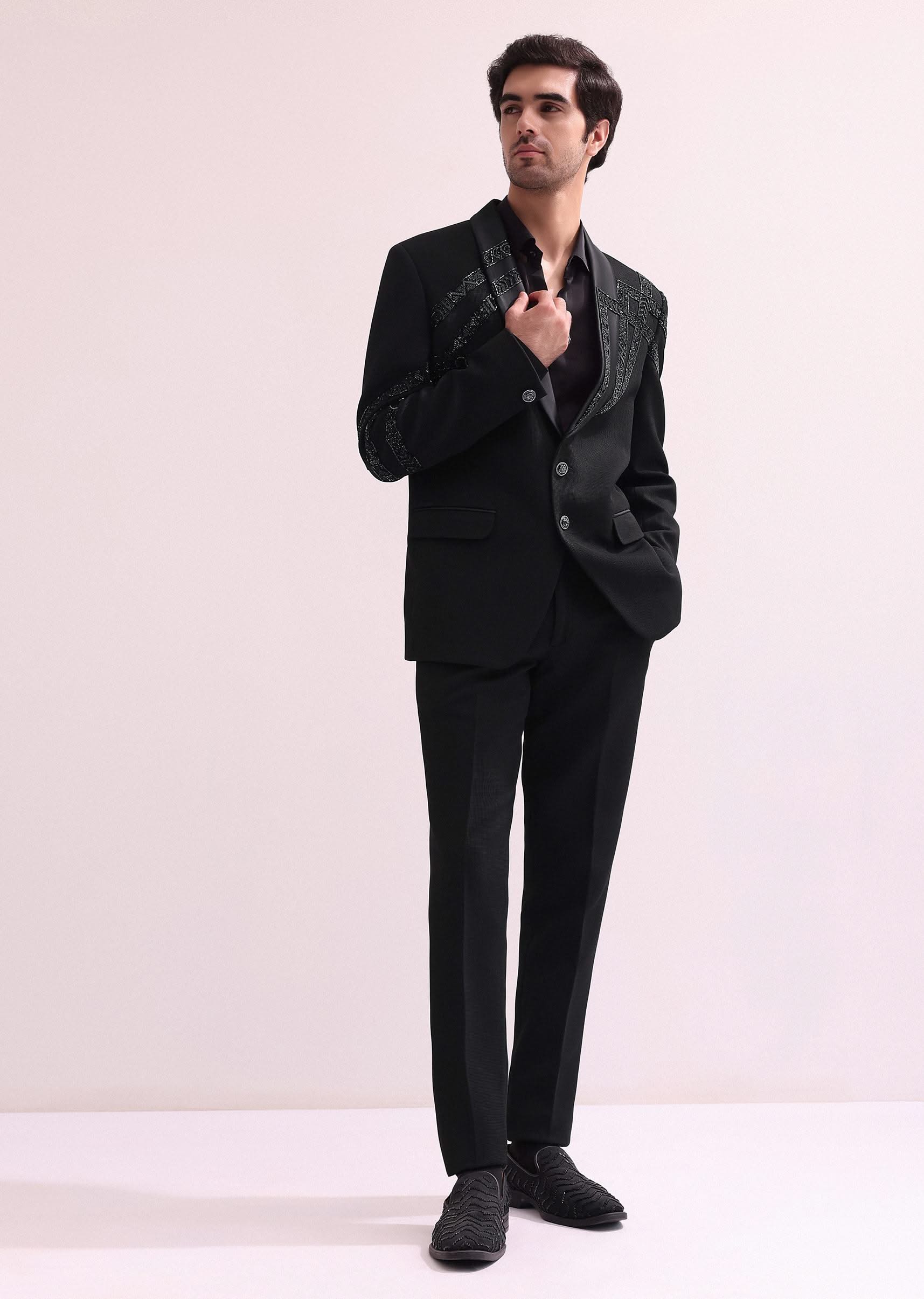 Black Lapel Hand Embroidered Tuxedo With Shirt And Pants