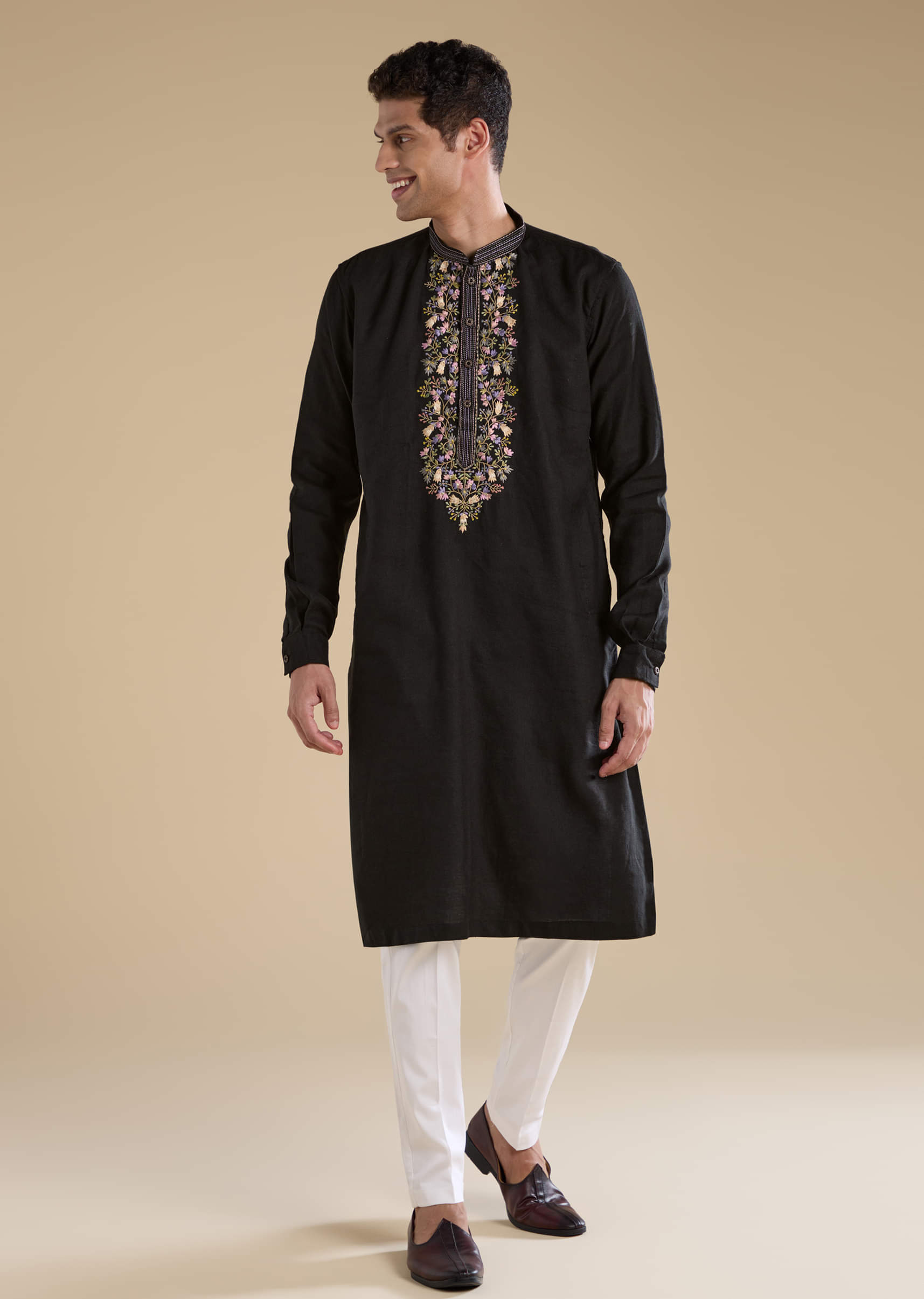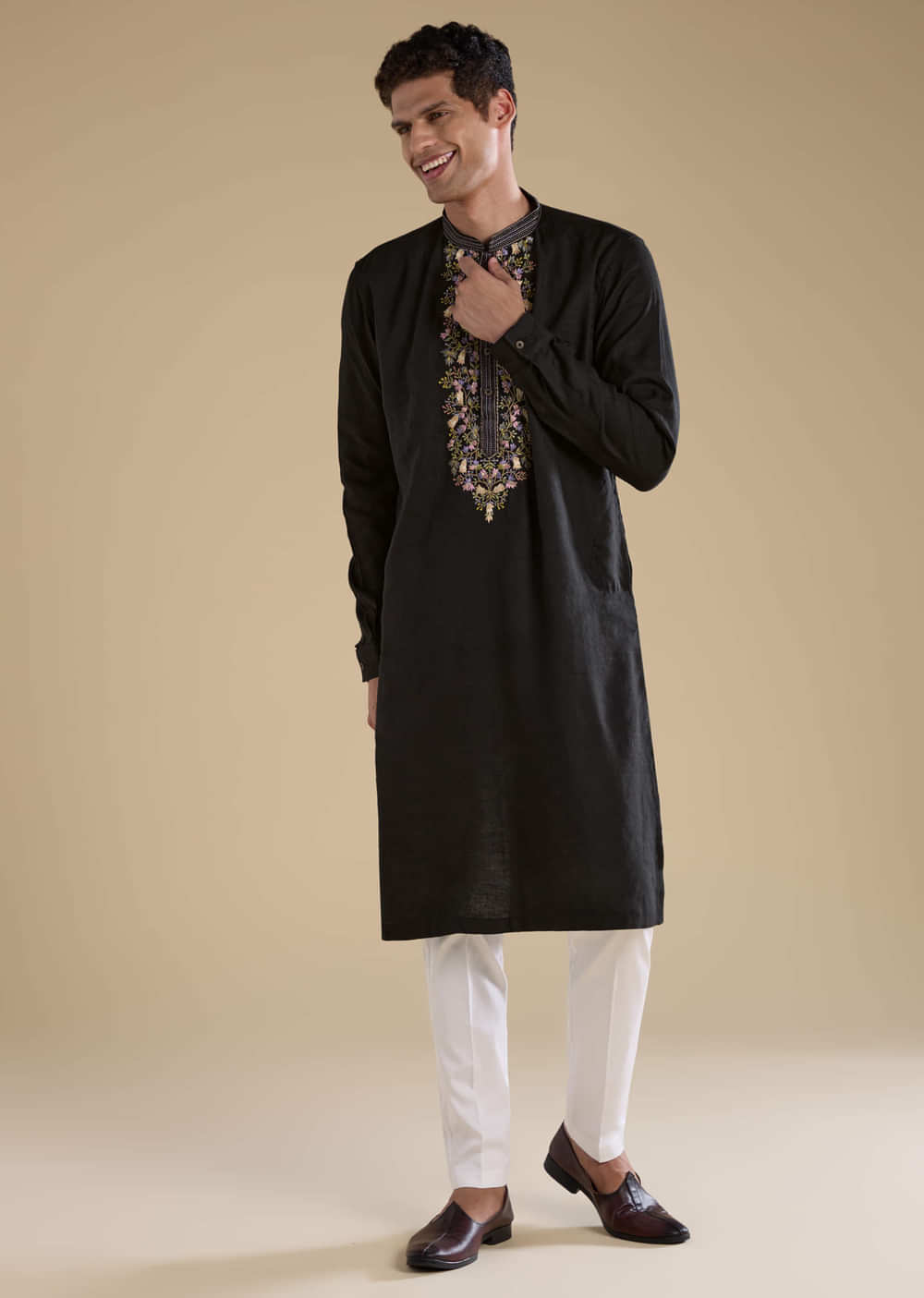Fit Tips:Opt for a tailored fit through the shoulders and chest to enhance the kurta’s clean lines and refined embroidery.