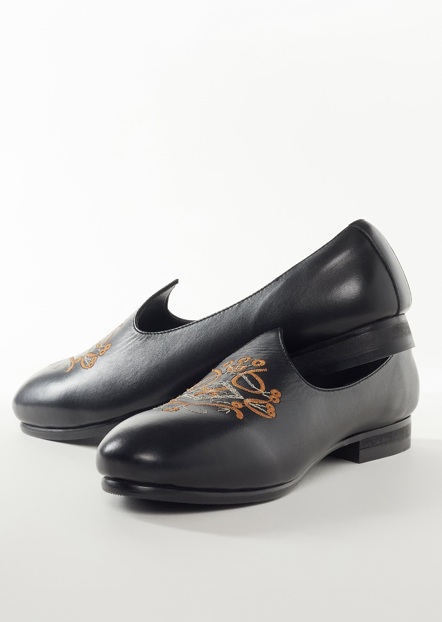 Black Mens Footwear With Embroidery Detail Work