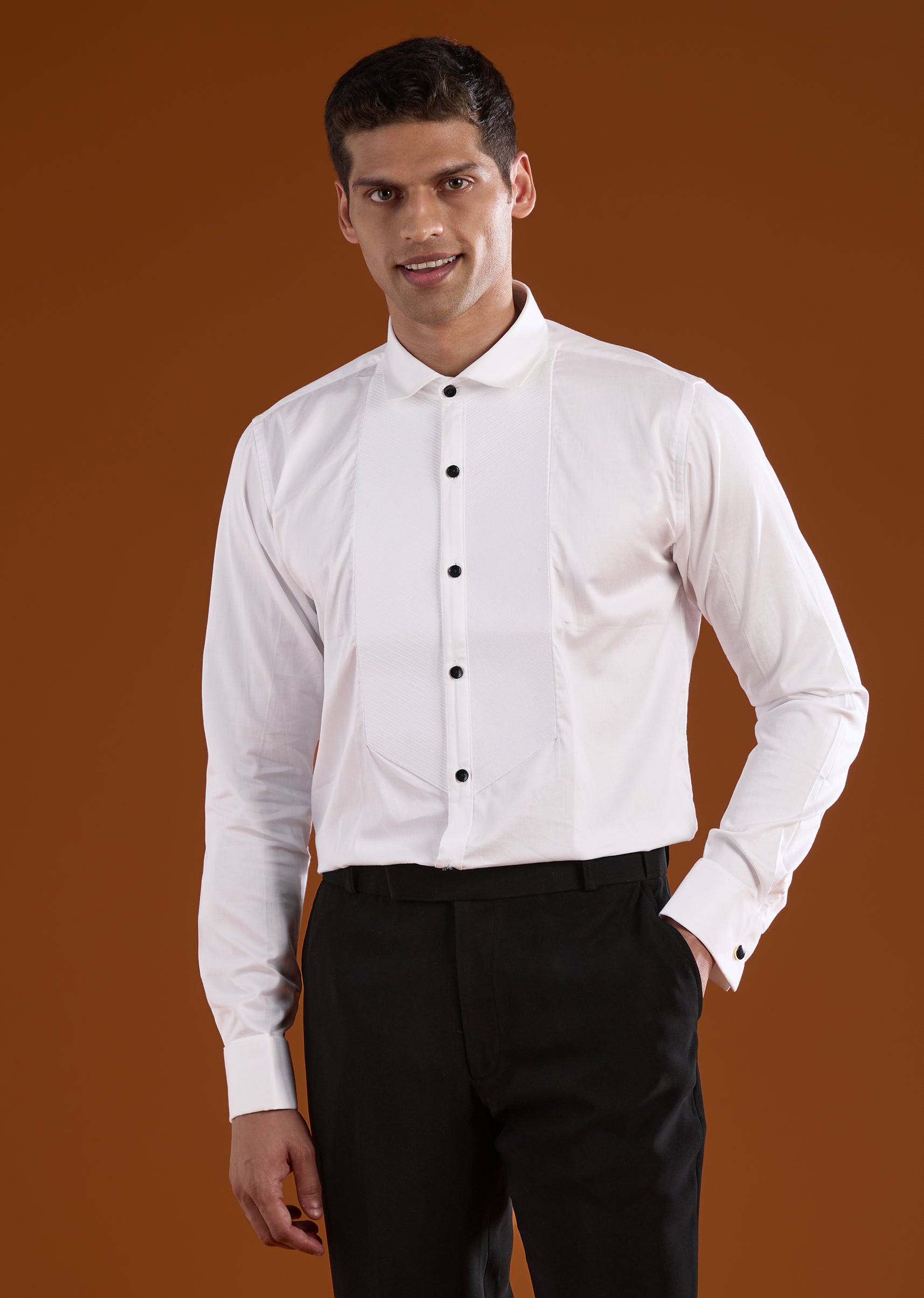 Pair it with polished black shoes and a sleek watch to highlight the intricate work without overwhelming the look.