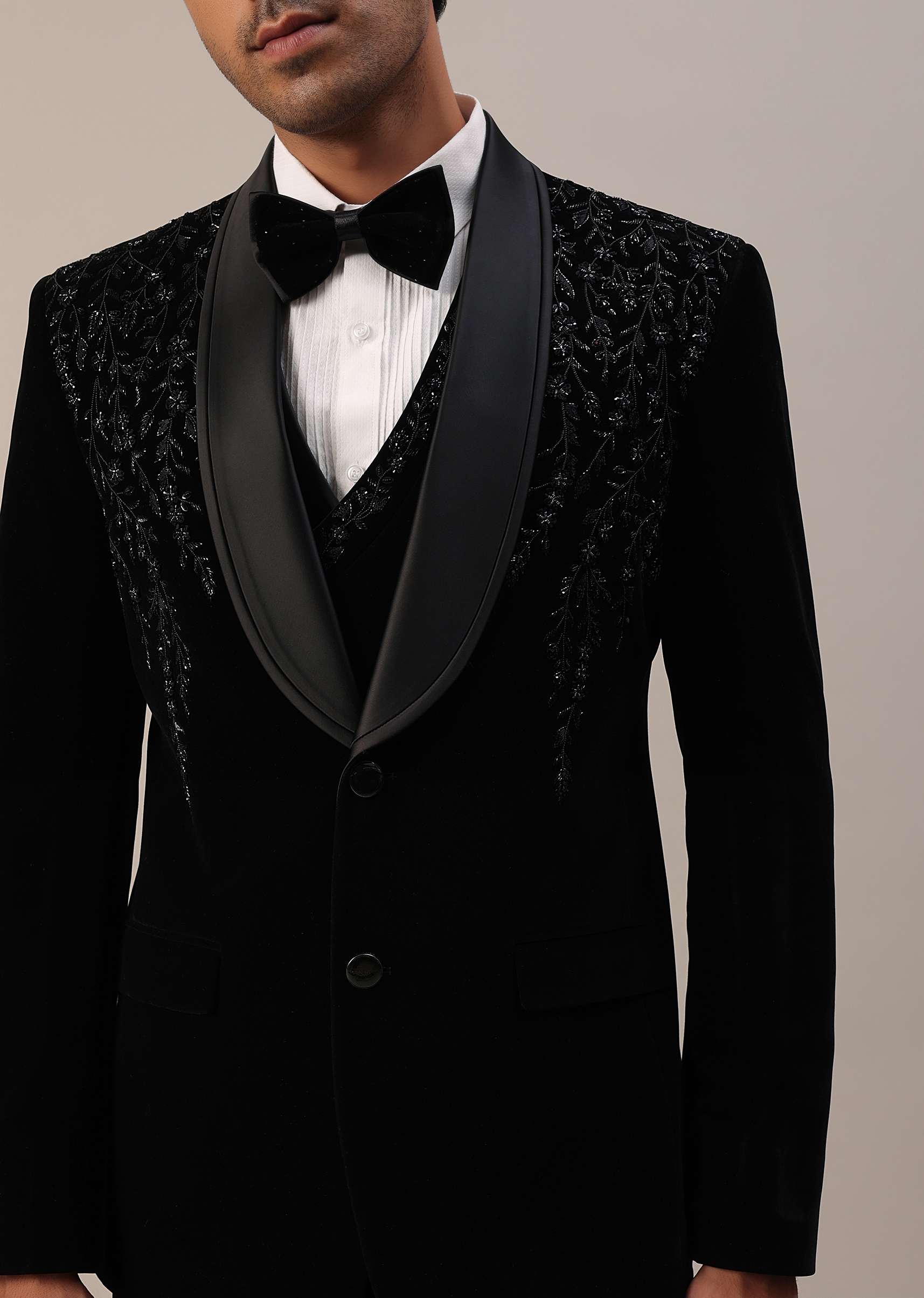 - Introducing our black micro velvet tuxedo set, the epitome of timeless classiness.