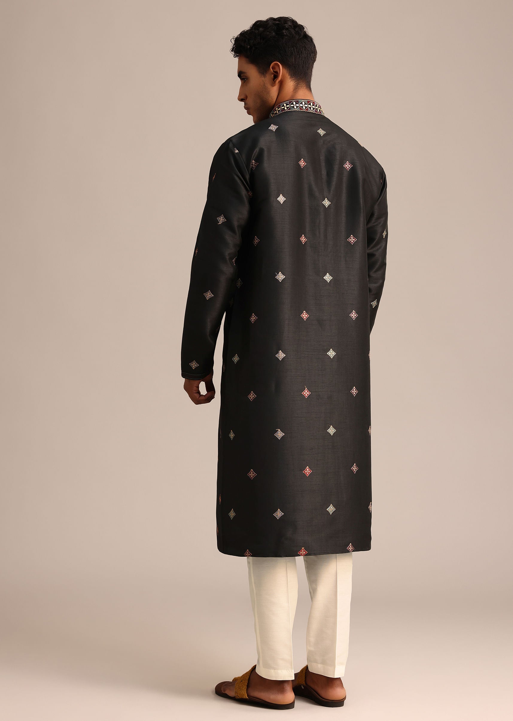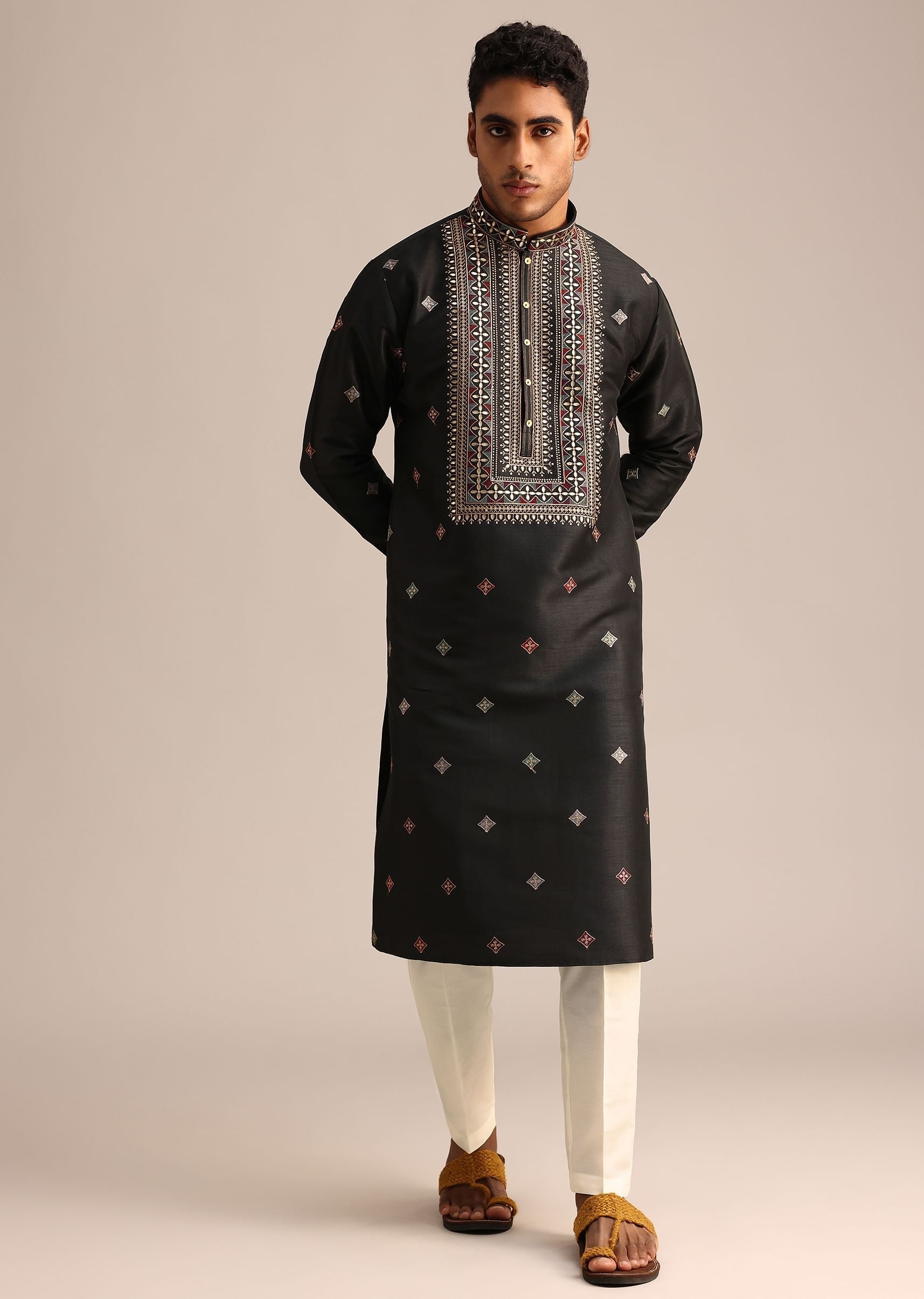 - A timeless addition to your traditional wardrobe; the kurta features intricate thread work and mirror embellishments.