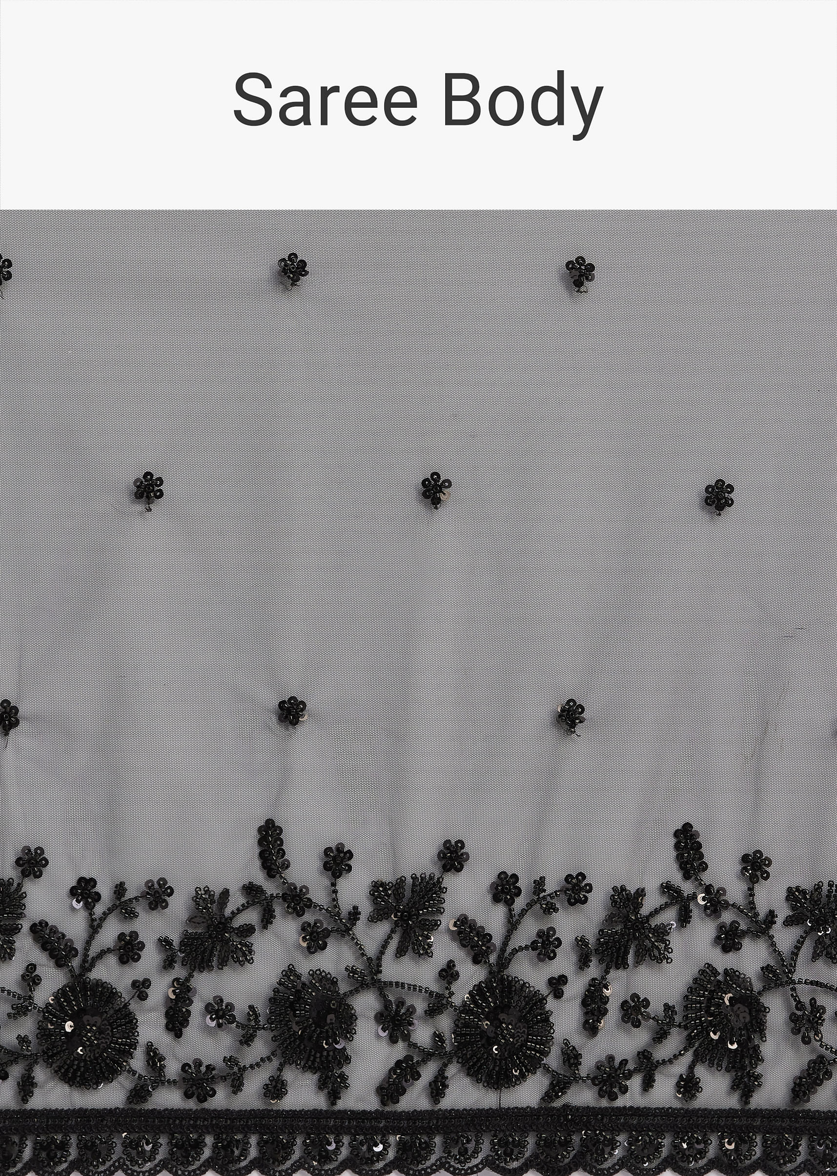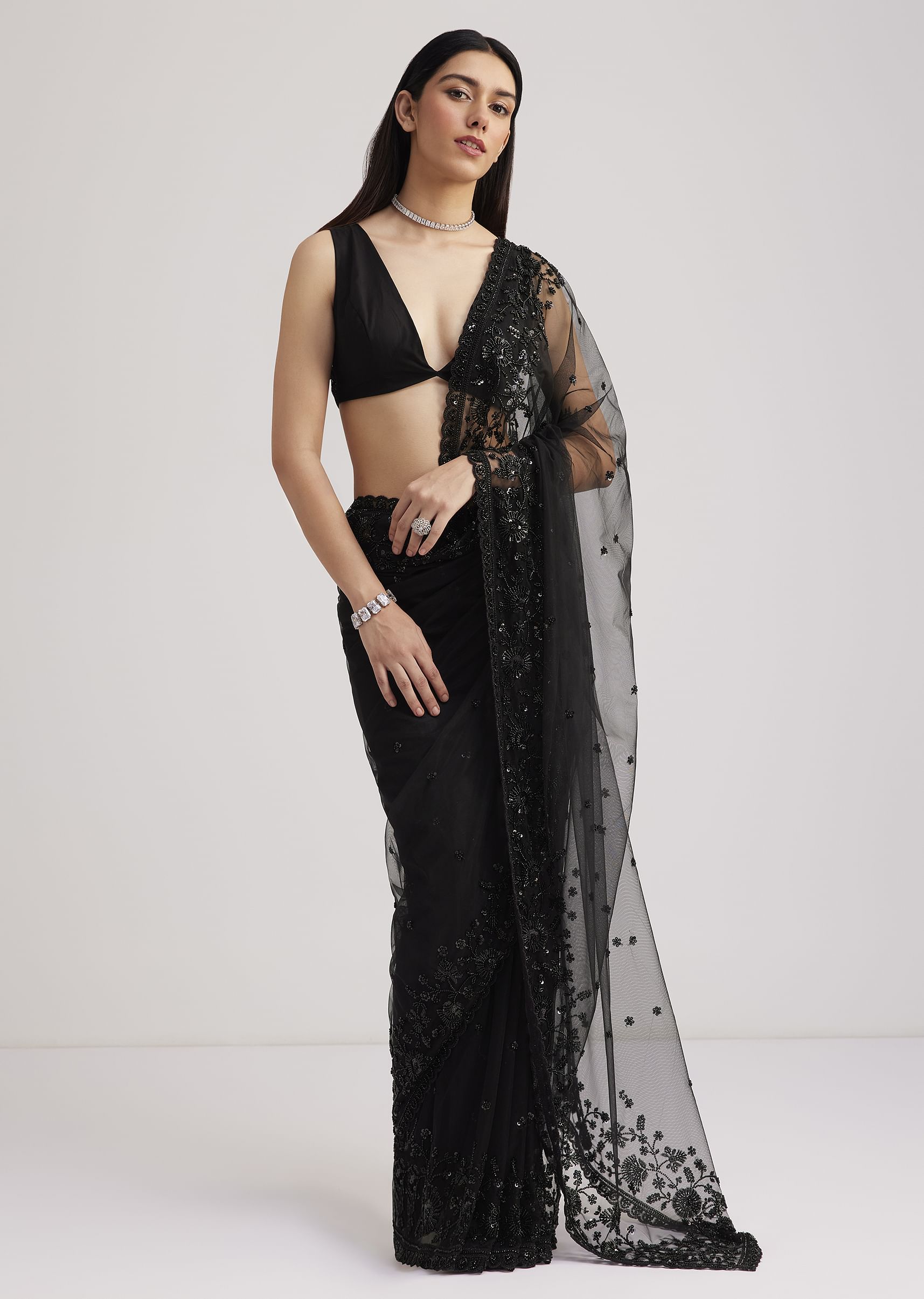 Black Net Heavy Embroidered Saree With Sequins And Stones