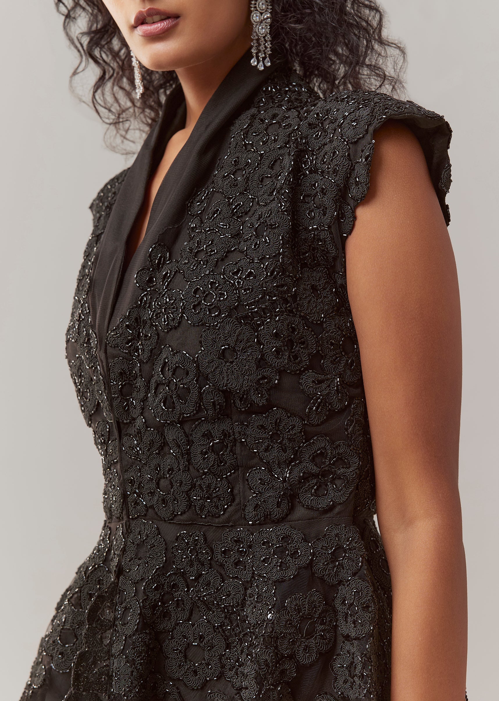 Chic with a hint of drama, this thread and cut dana work peplum set is designed for effortless festive style. The embroidered organza peplum top with cap sleeves and a... More Product Details