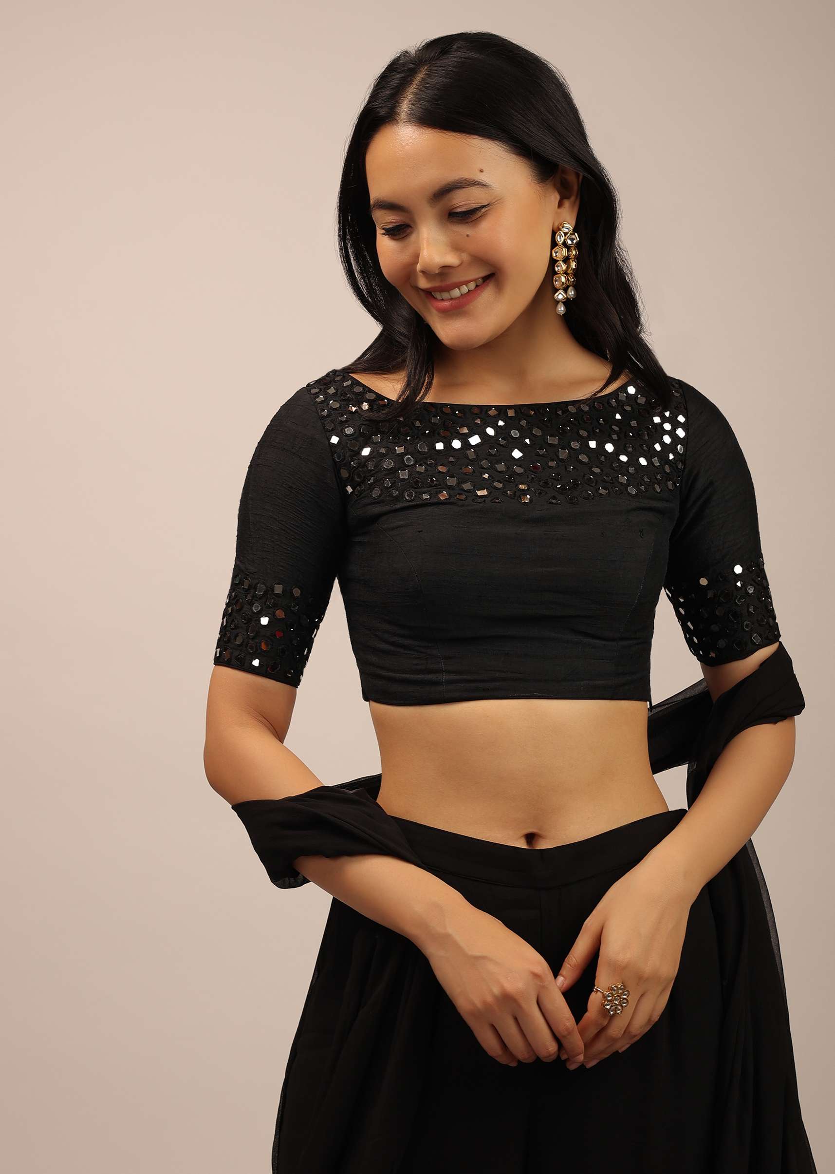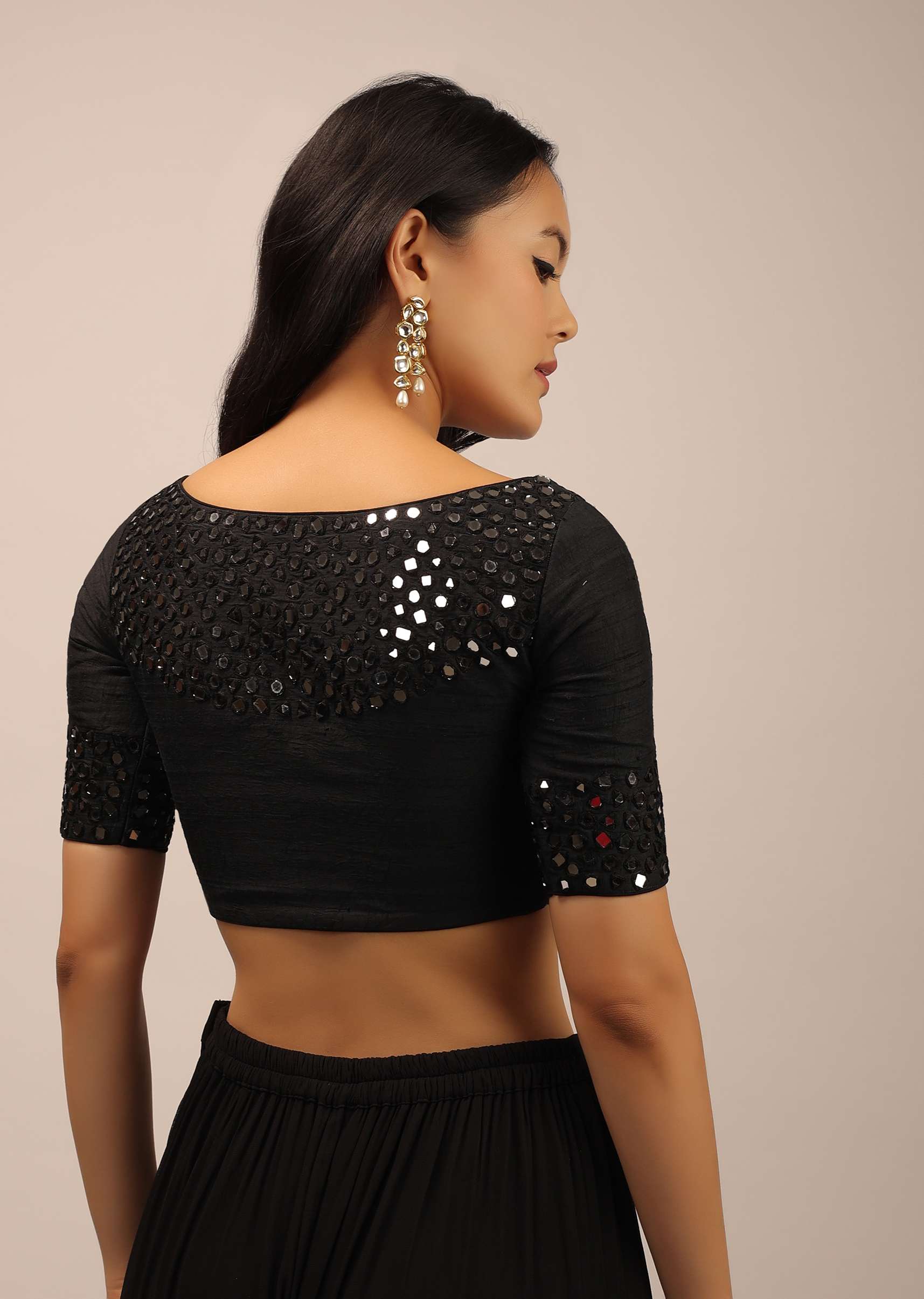 Black Padded Blouse With Mirror Work And Half Sleeves
