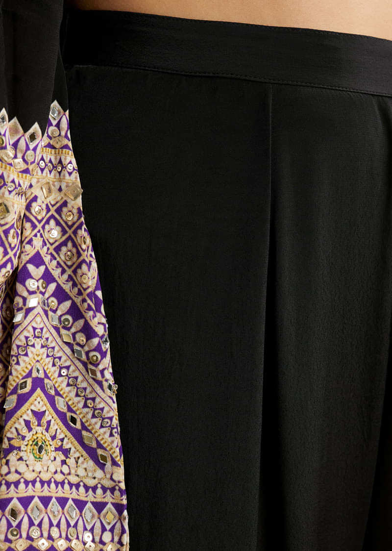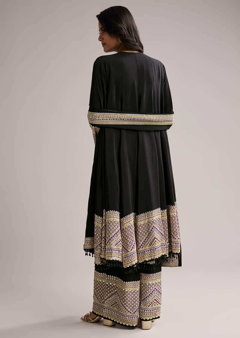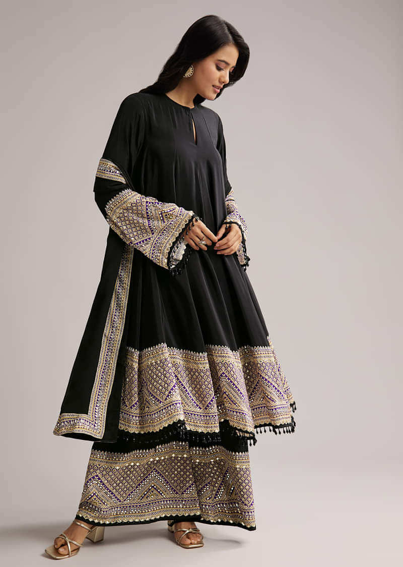 Black Printed Border Anarkali Set With Palazzo And Dupatta