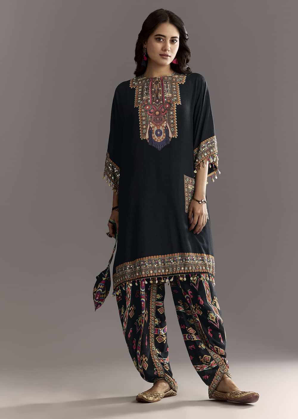 Black Printed Muslin Kurta Dhoti Set