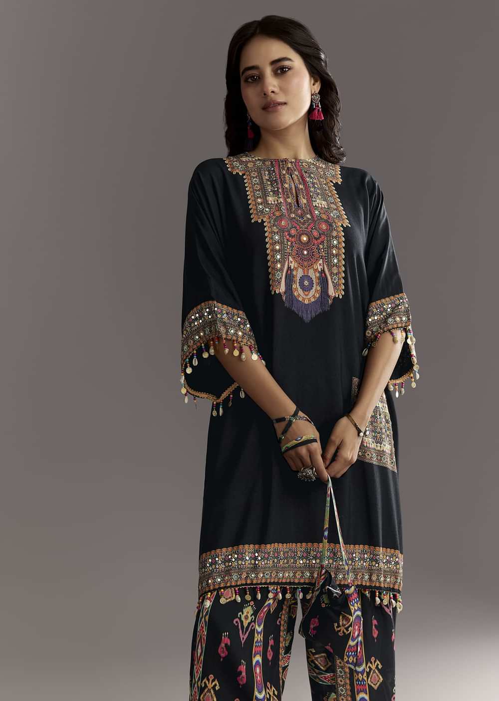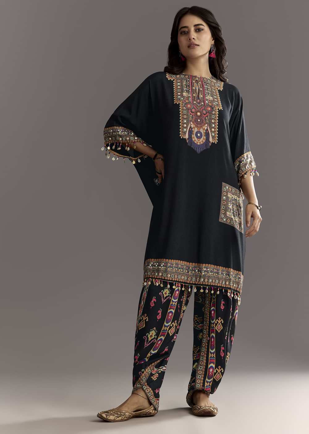 A black muslin dream of playful ease, this printed co-ord set is perfect for evening strolls or casual mehendi meetups. Awarded as the Most Trusted Brand, we're delivering styles you... More Product Details