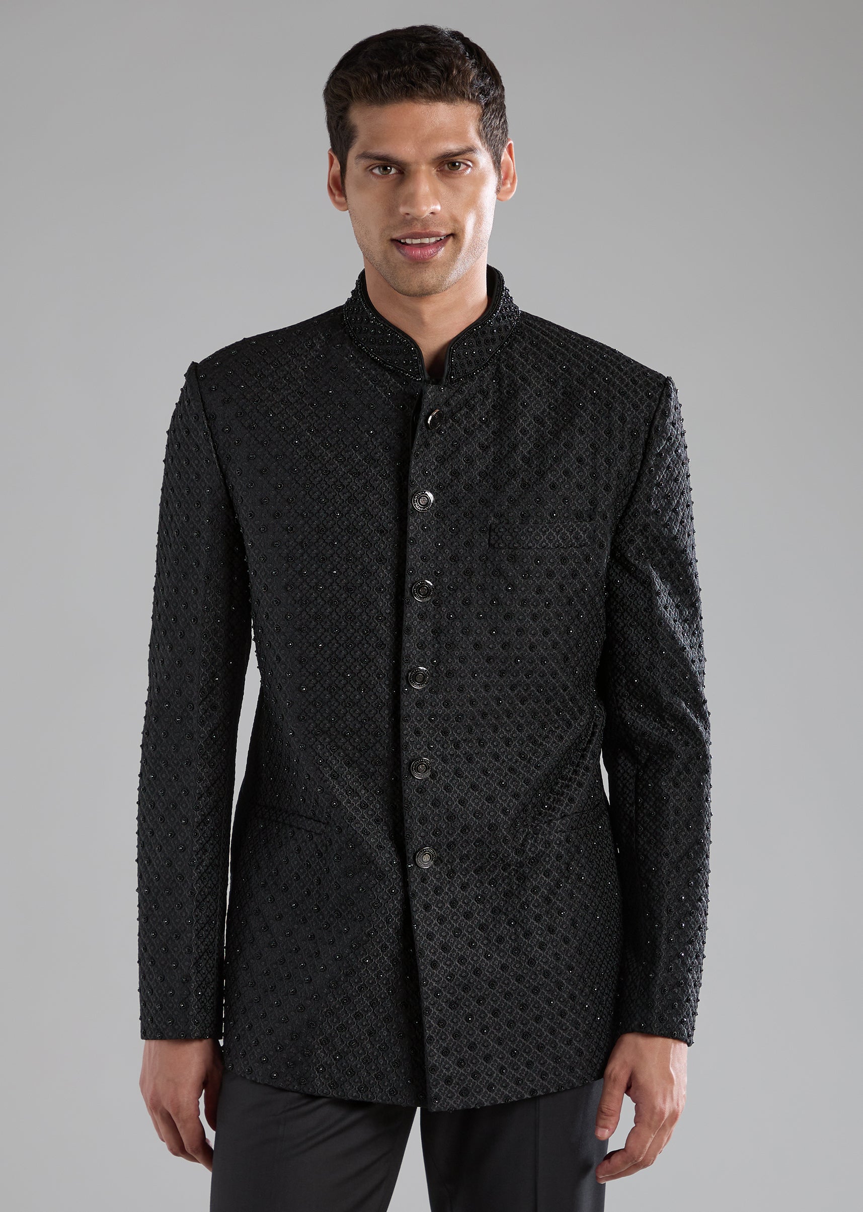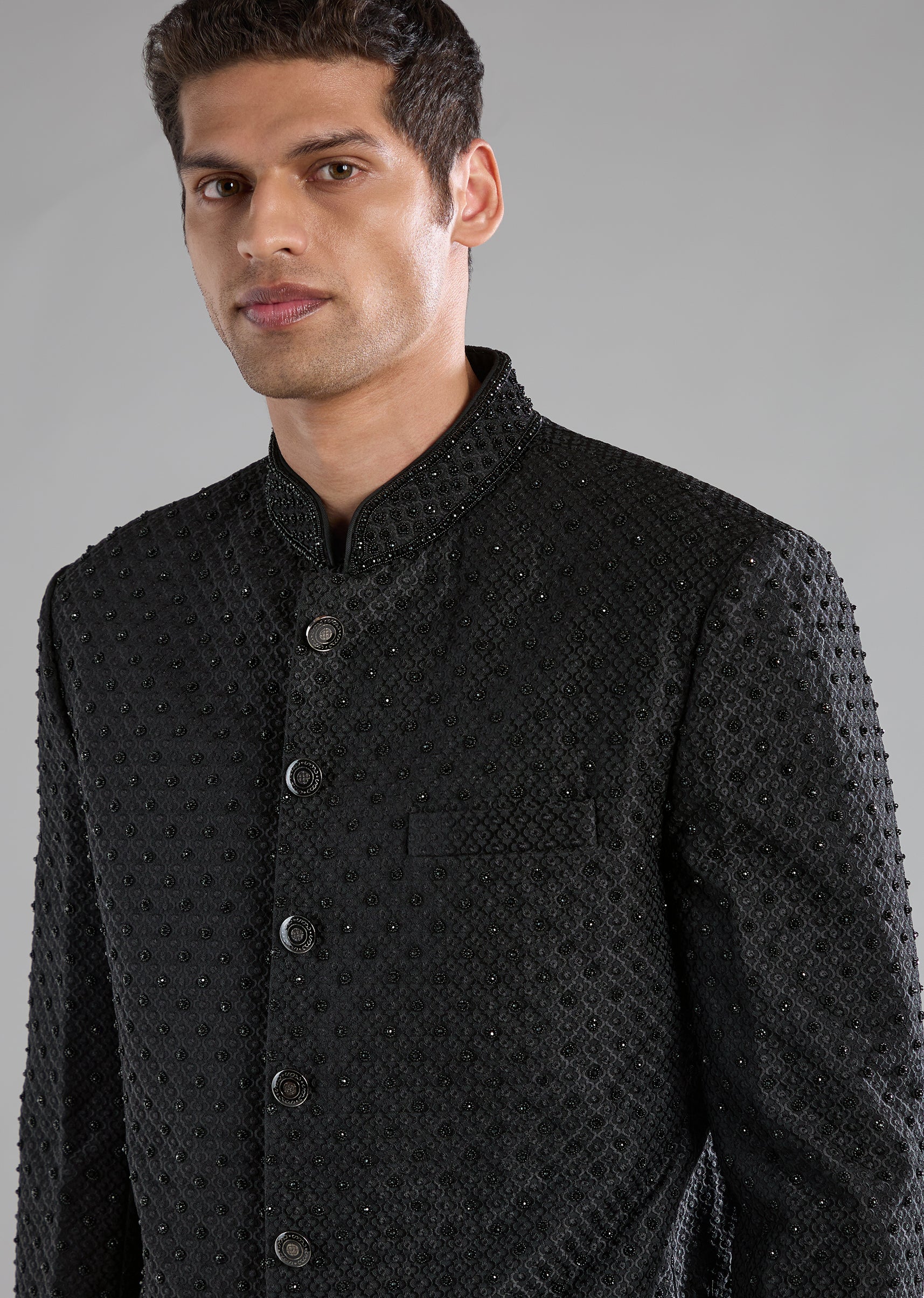 Black Rayon Jodhpuri Set with Bead Work