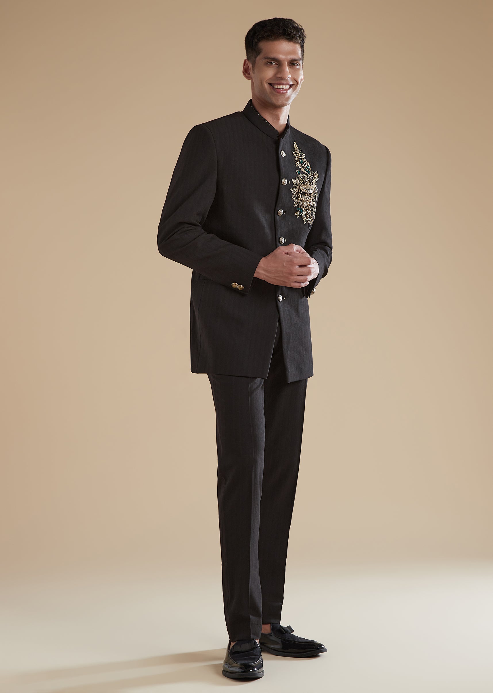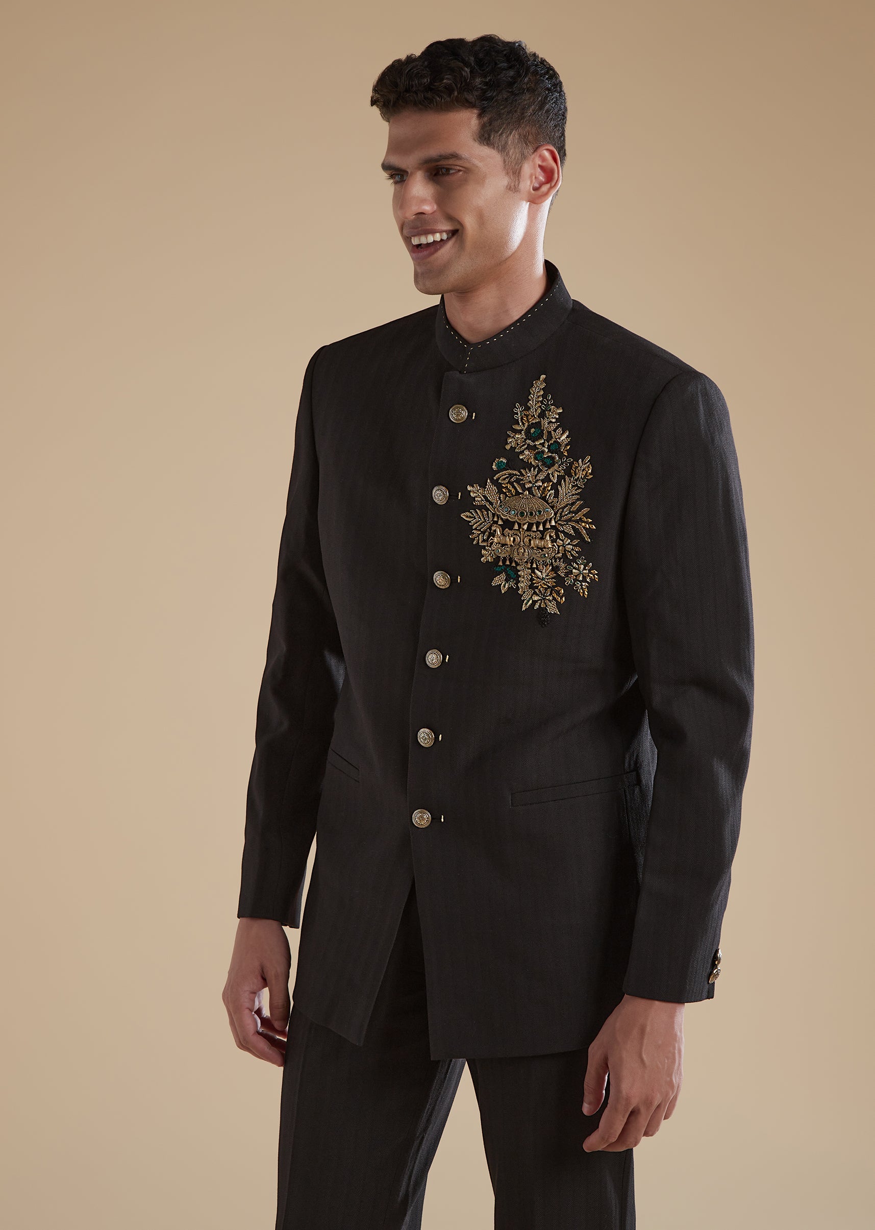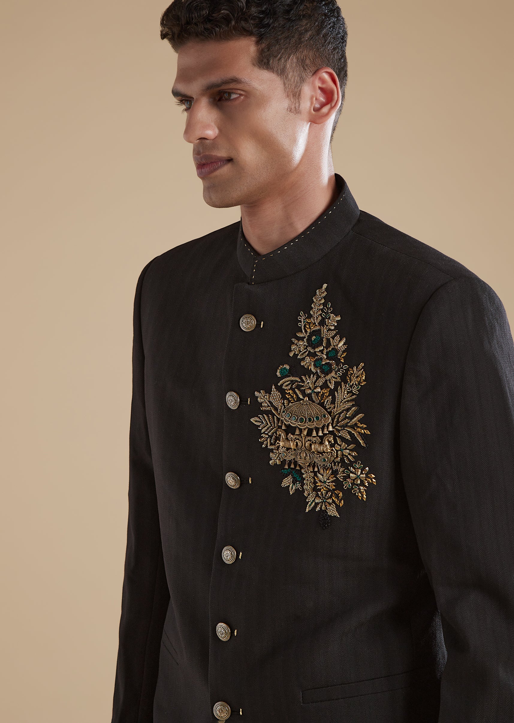 Black Rayon Jodhpuri Set With Metal Zardosi Thread Resham Work