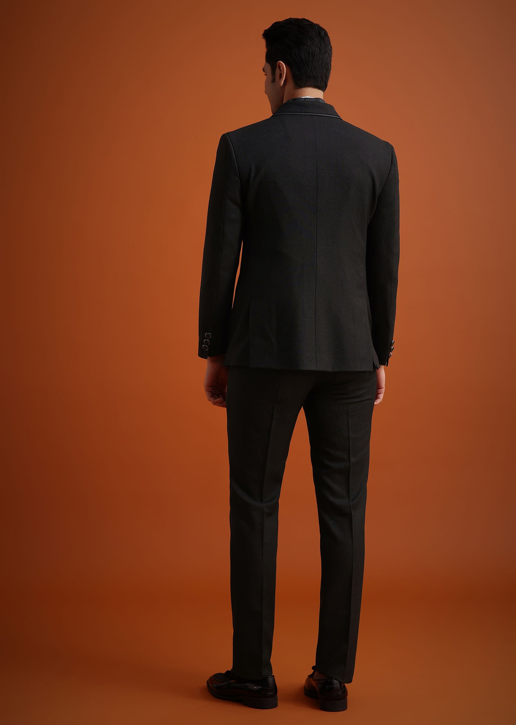 Black Rayon Tuxedo And Pant Set With Embellished Stones