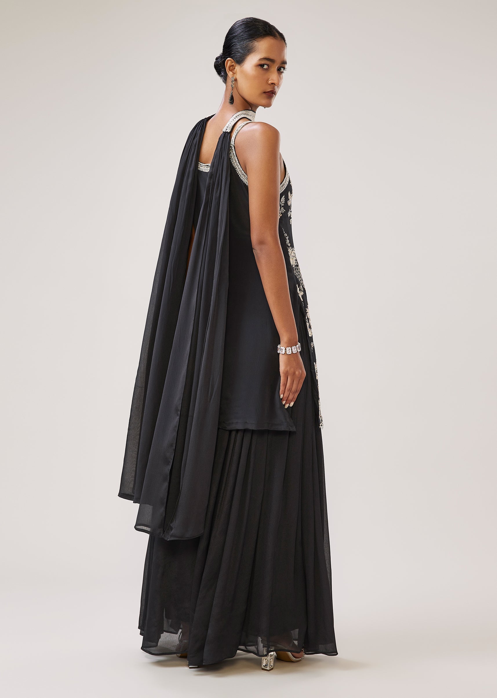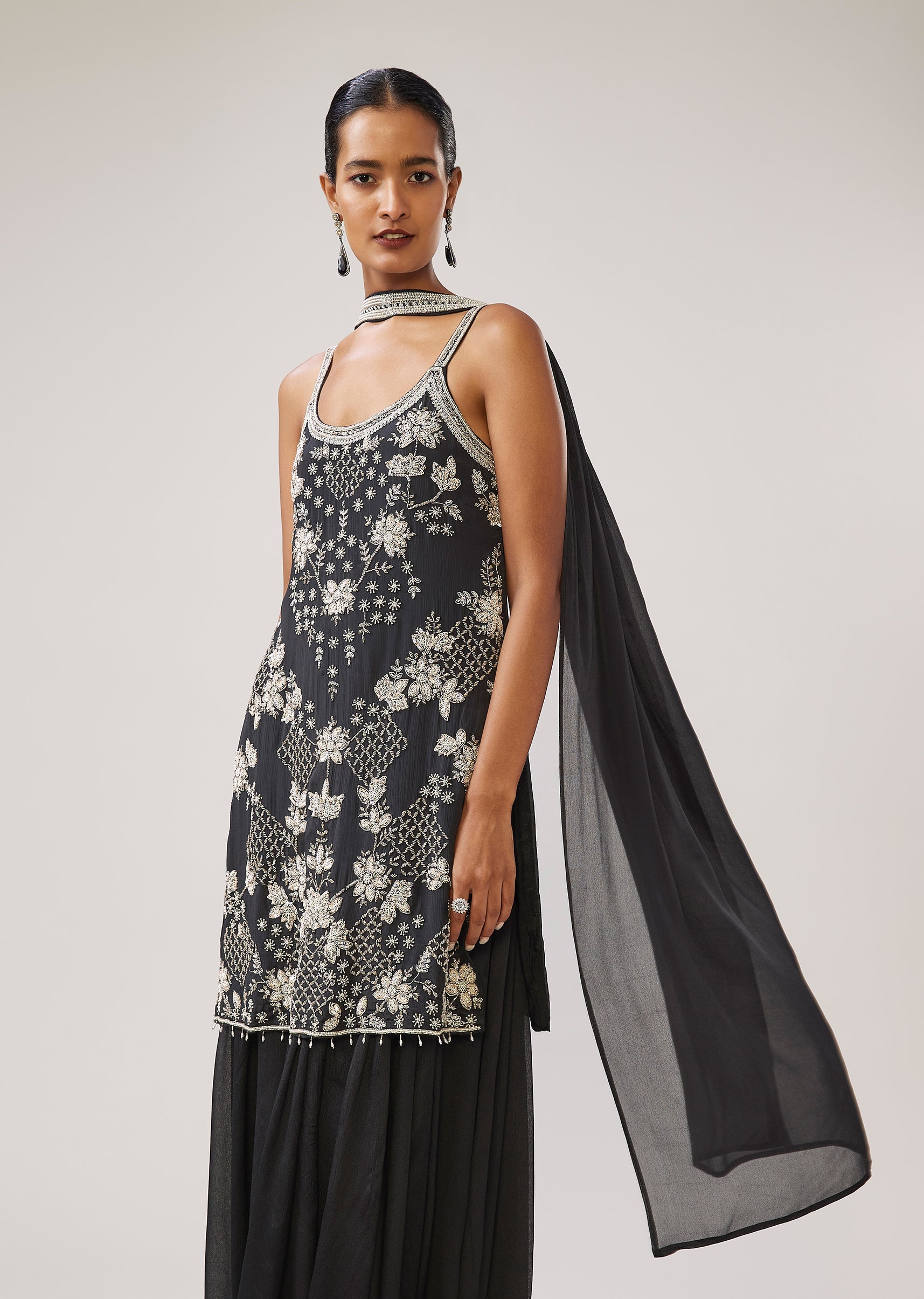 Black Sequin Cut Dana Strap Kurta Palazzo Set With Dupatta