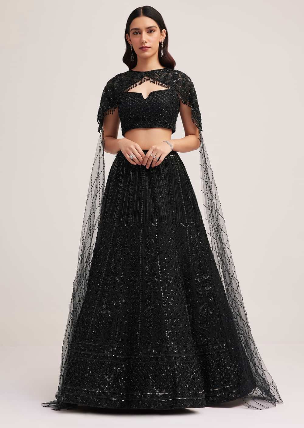 Black Sequin Embellished Lehenga Choli Set With Cape