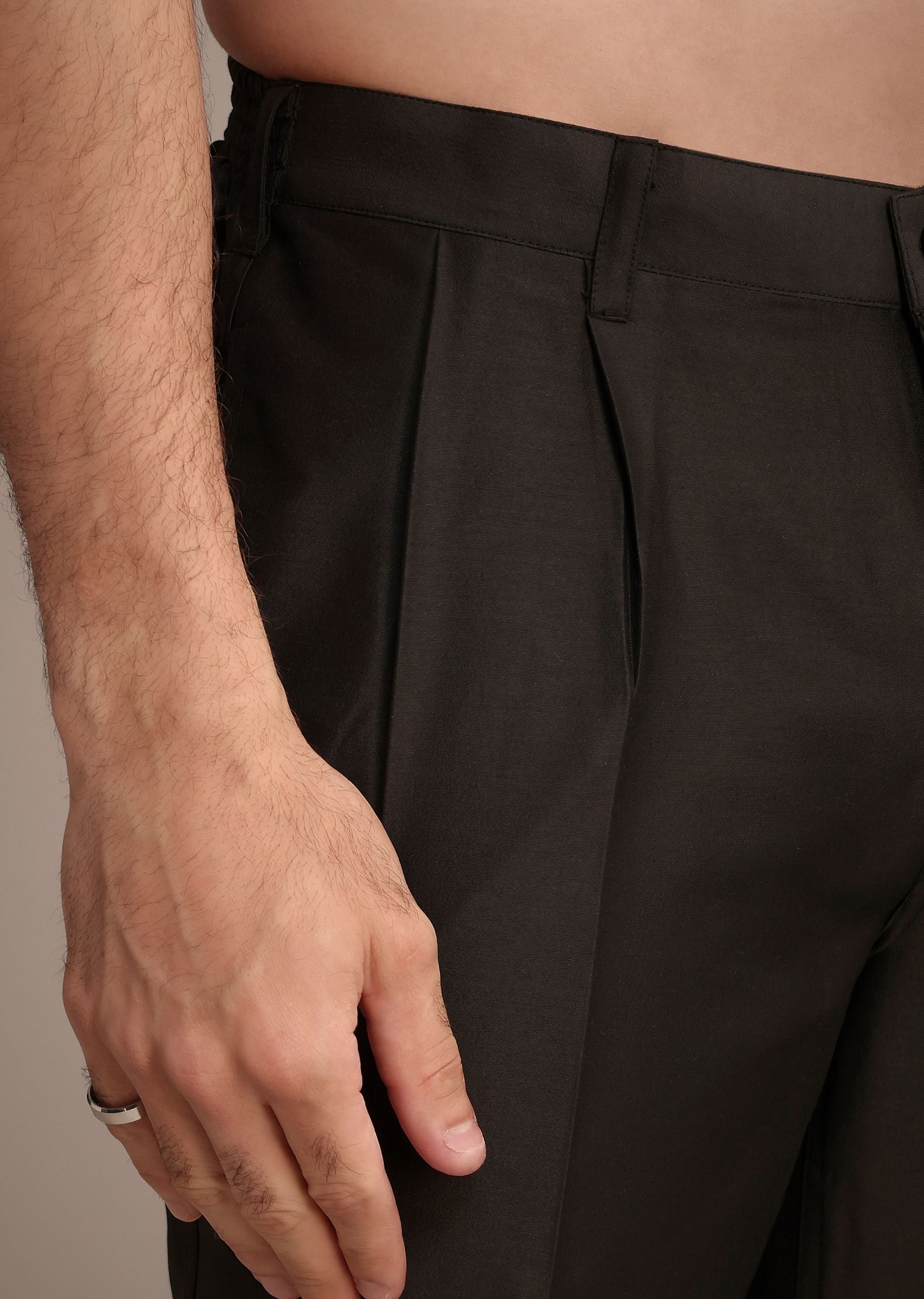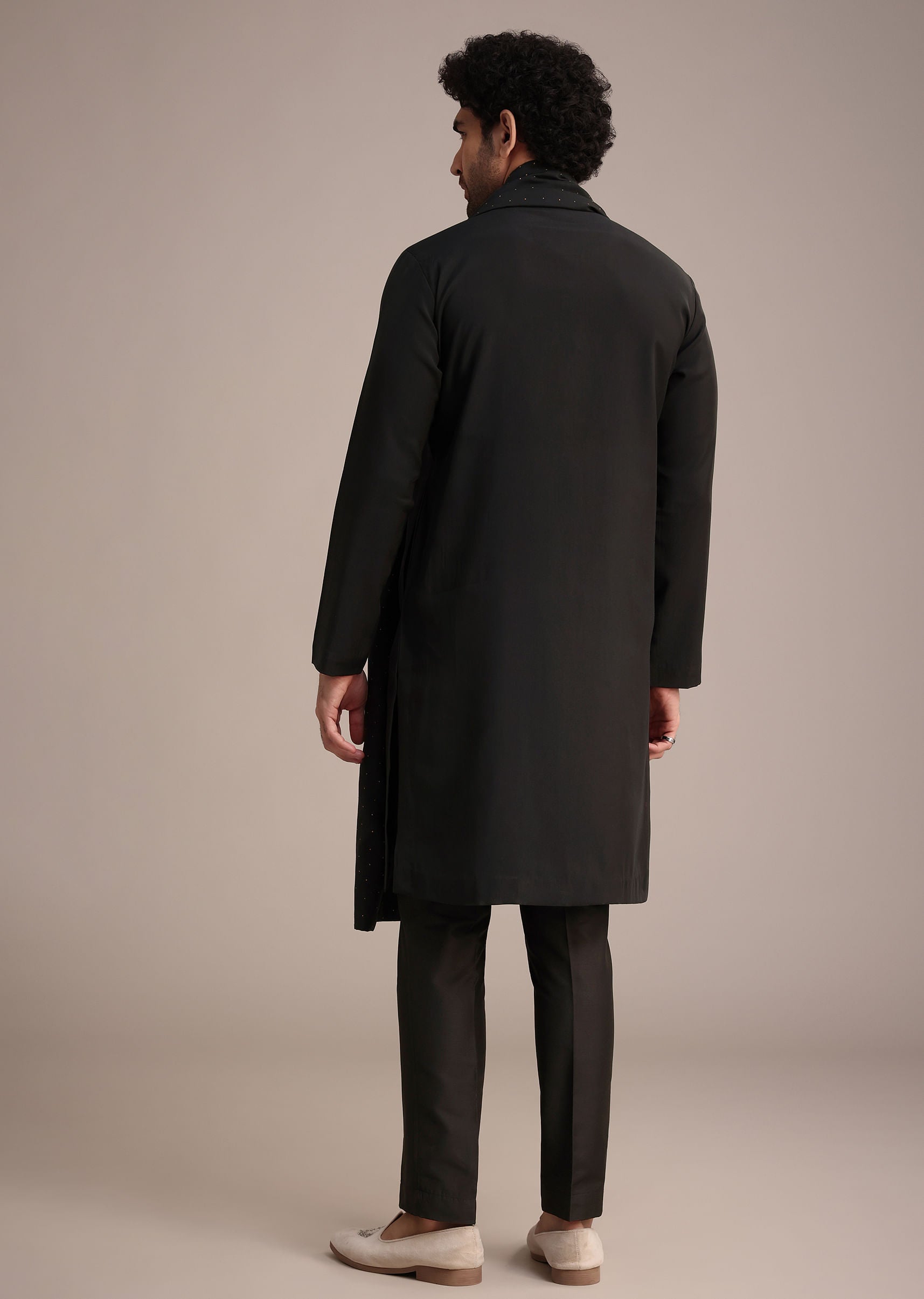 This black kurta set features a graceful silhouette paired with a matching dupatta. Its silk blend fabric radiates elegance while ensuring allday comfort. Perfect for festive evenings or traditional events... More Product Details