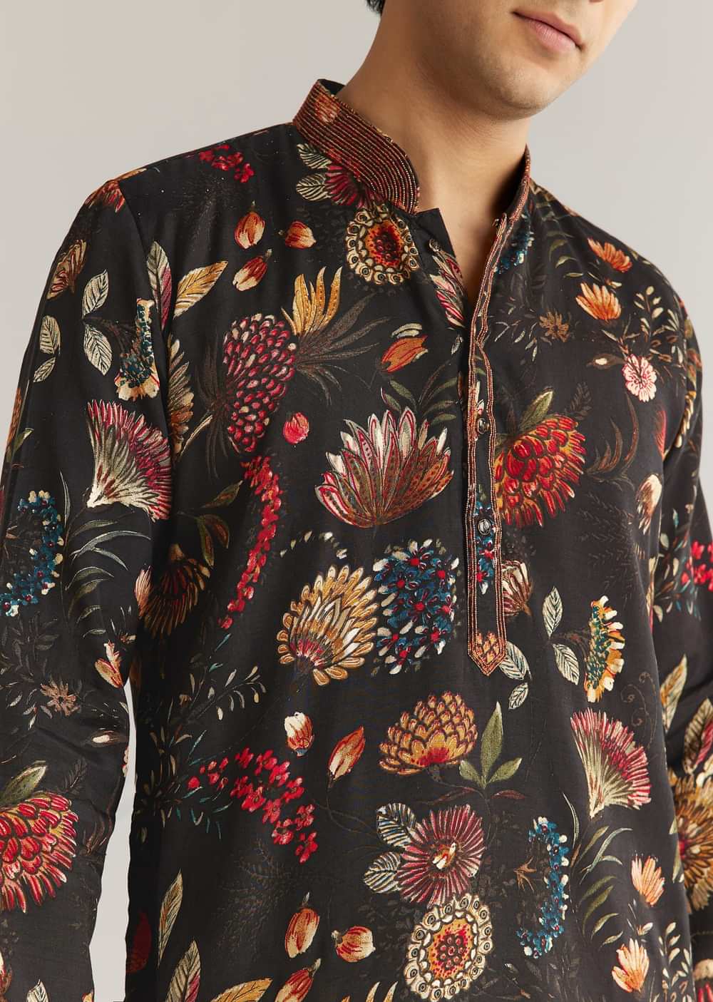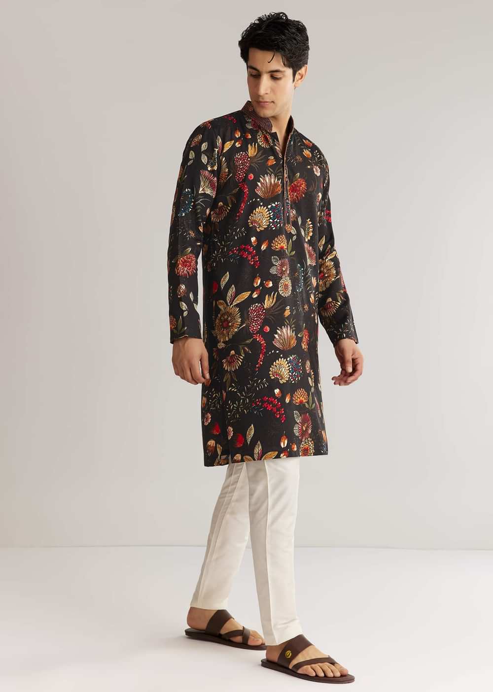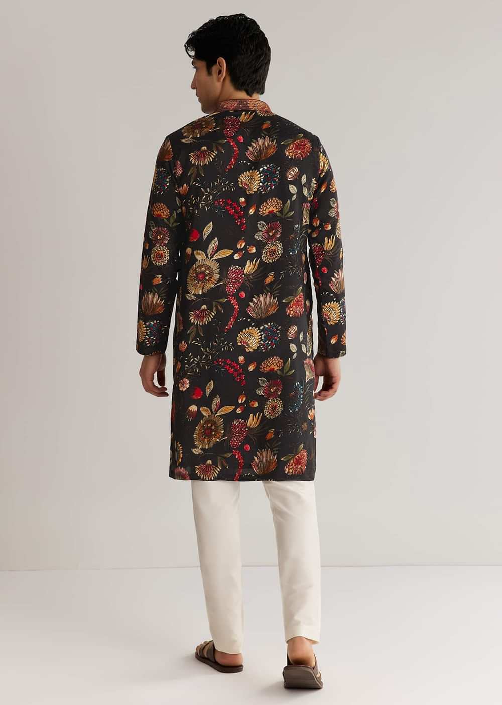 Black Silk Floral Resham Embroidered Kurta Set