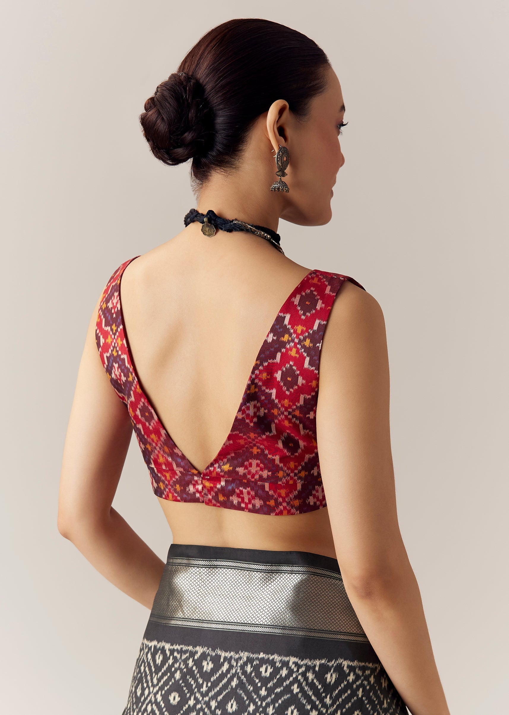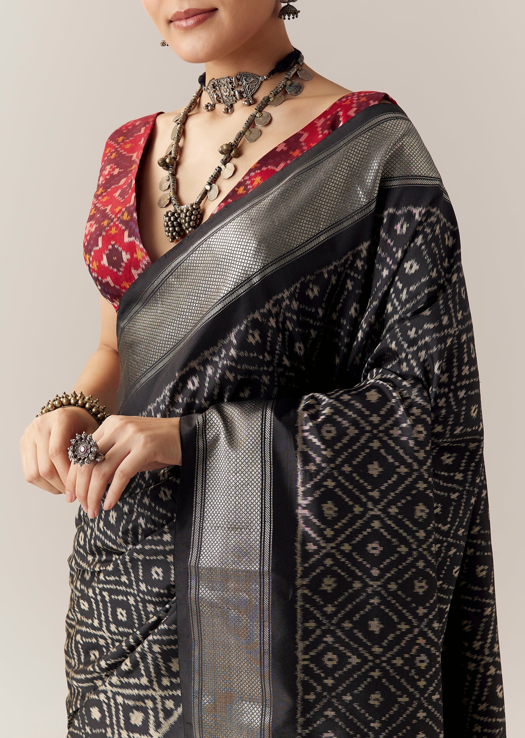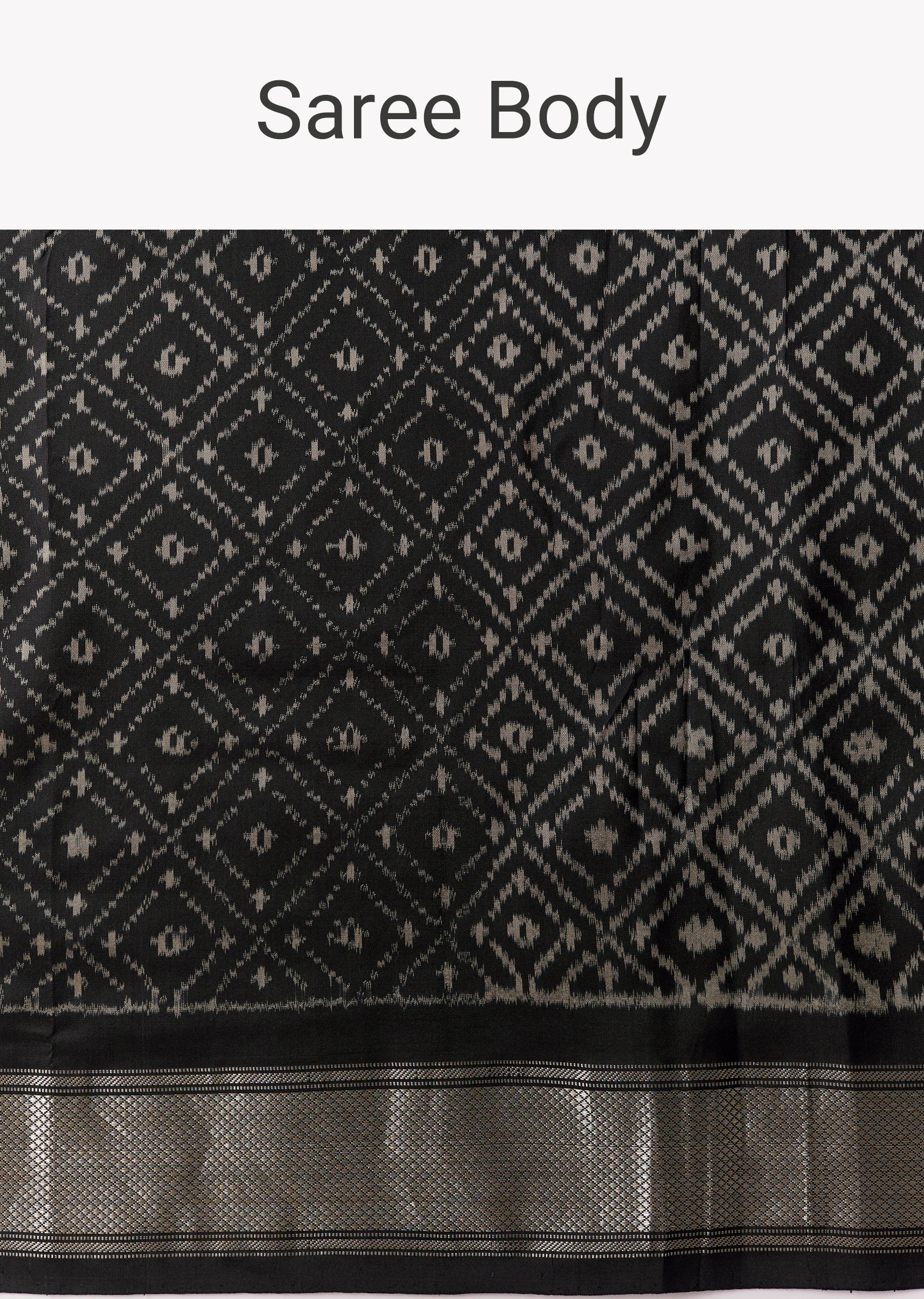 Black Silk Ikkat Weave Saree with Unstitched Blouse