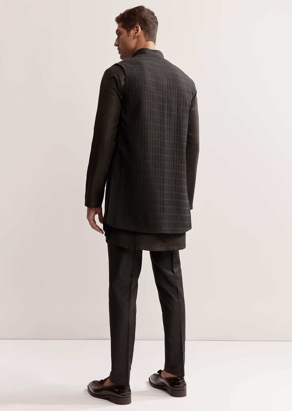 Black Silk Kurta Jacket Set For Men With Cutdana Embroidery