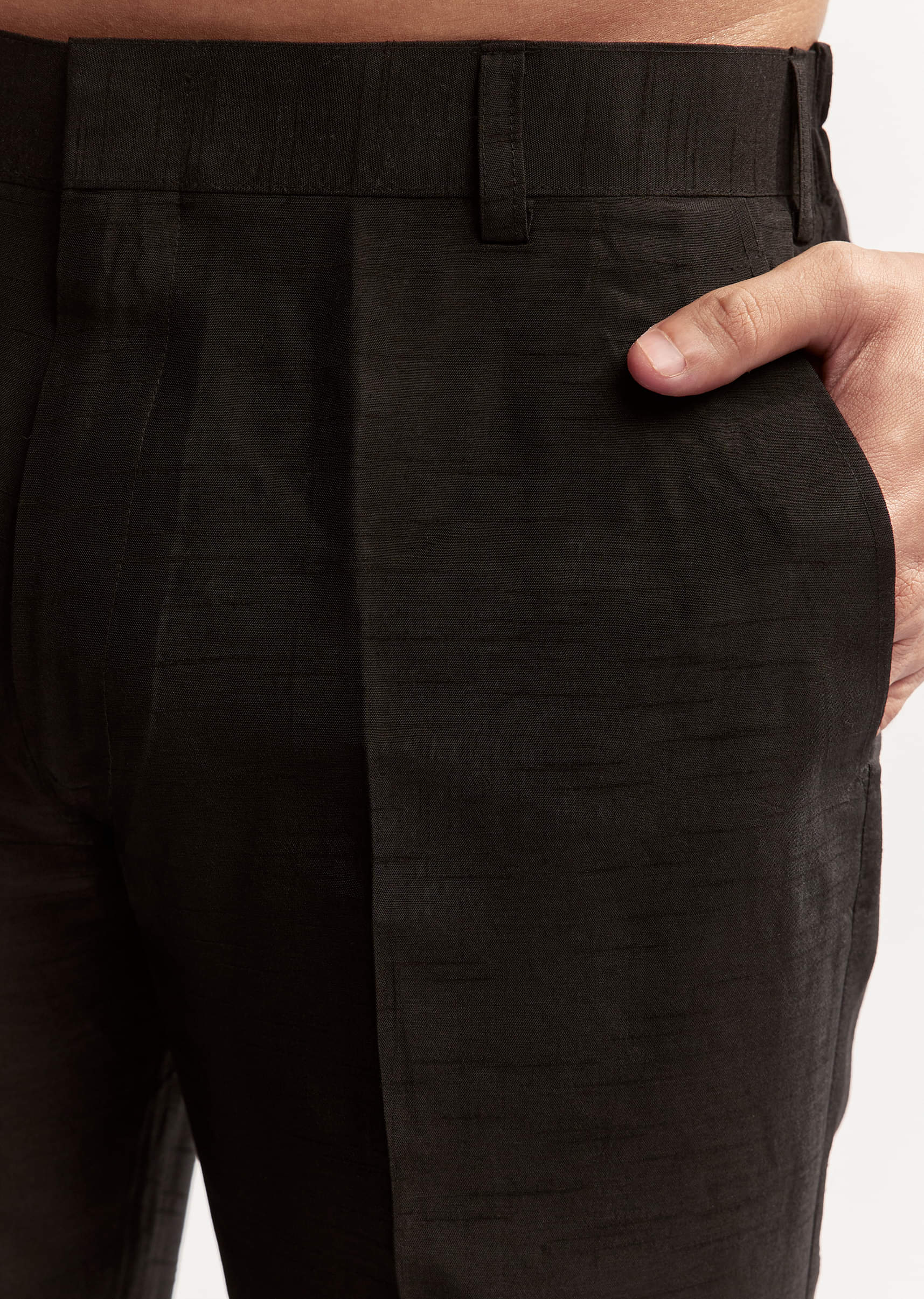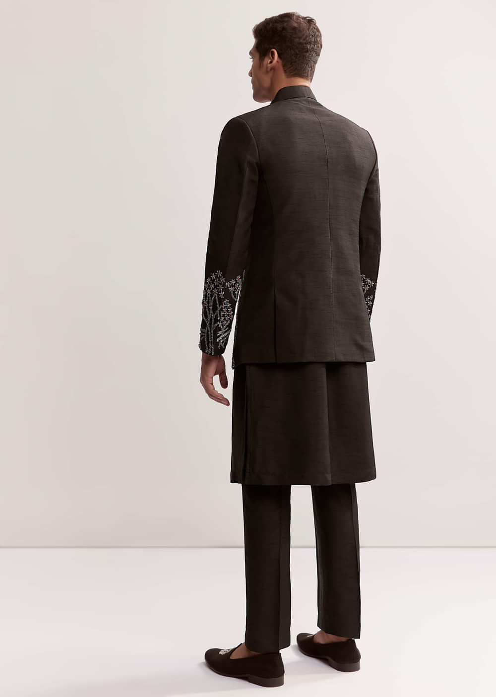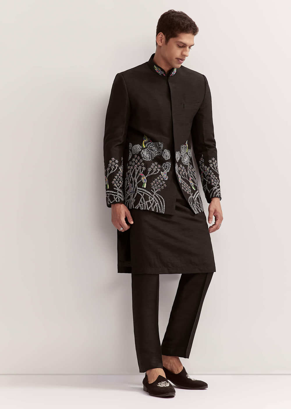Black Silk Kurta Jacket Set For Men With Zardosi Embroidery