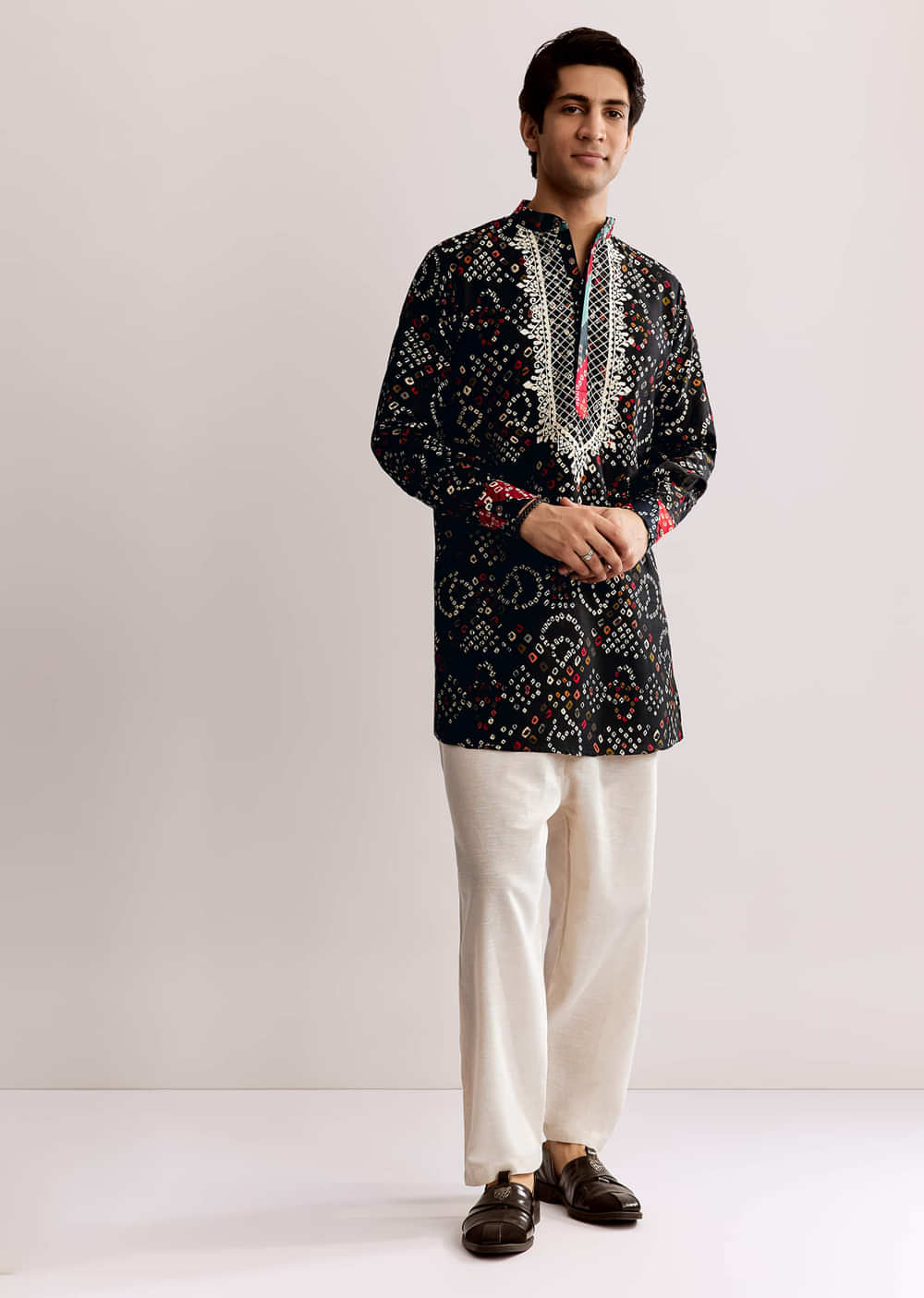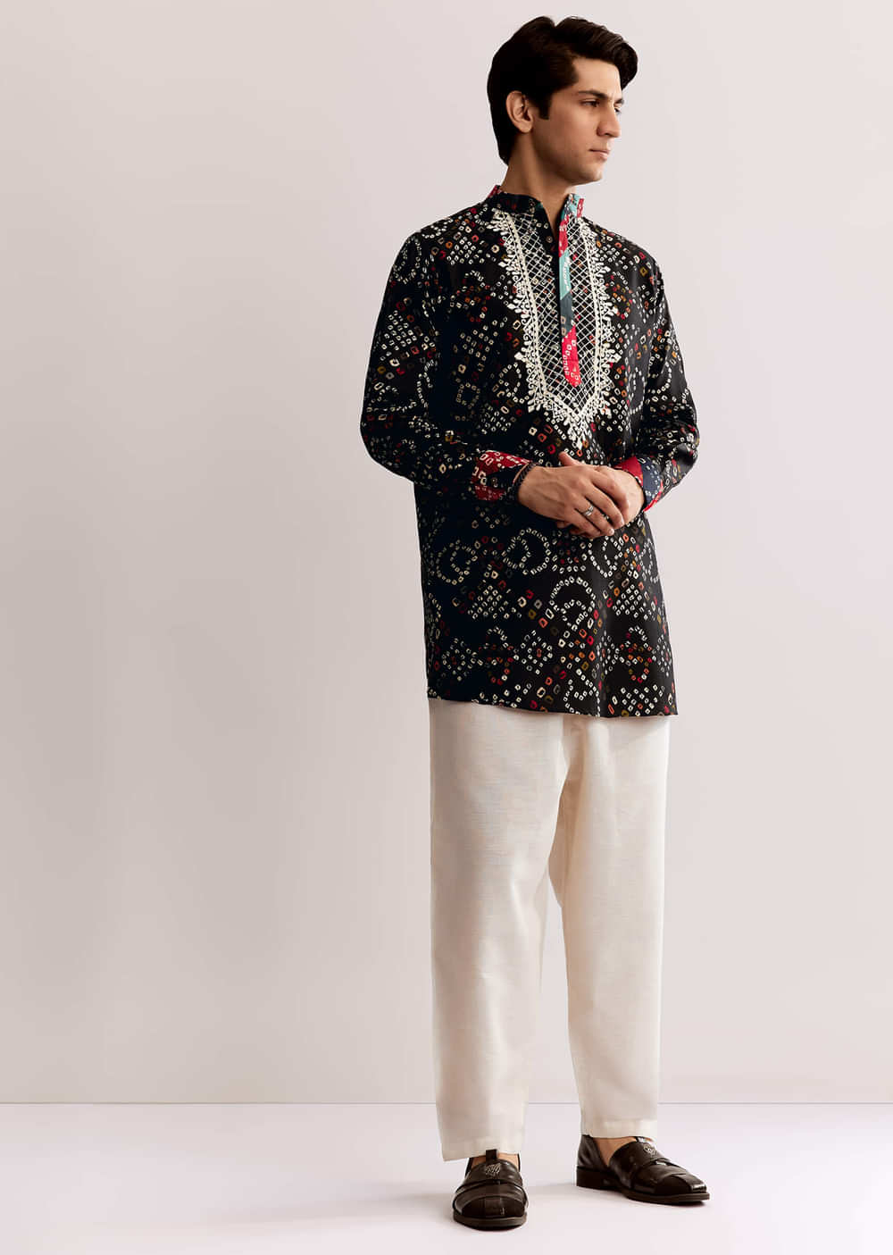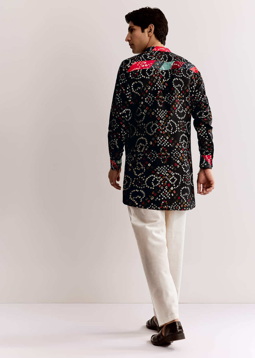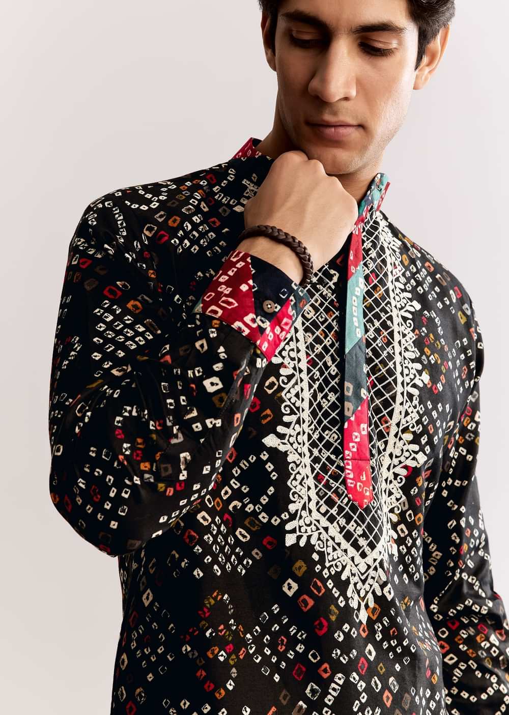 A Celebration Of Heritage This Black Silk Kurta Features Vibrant Bandhani Prints Infused With Tradition And Modern Appeal.Awarded As The Most Trusted Brand We'Re Delivering Styles You Love Just As Promised.