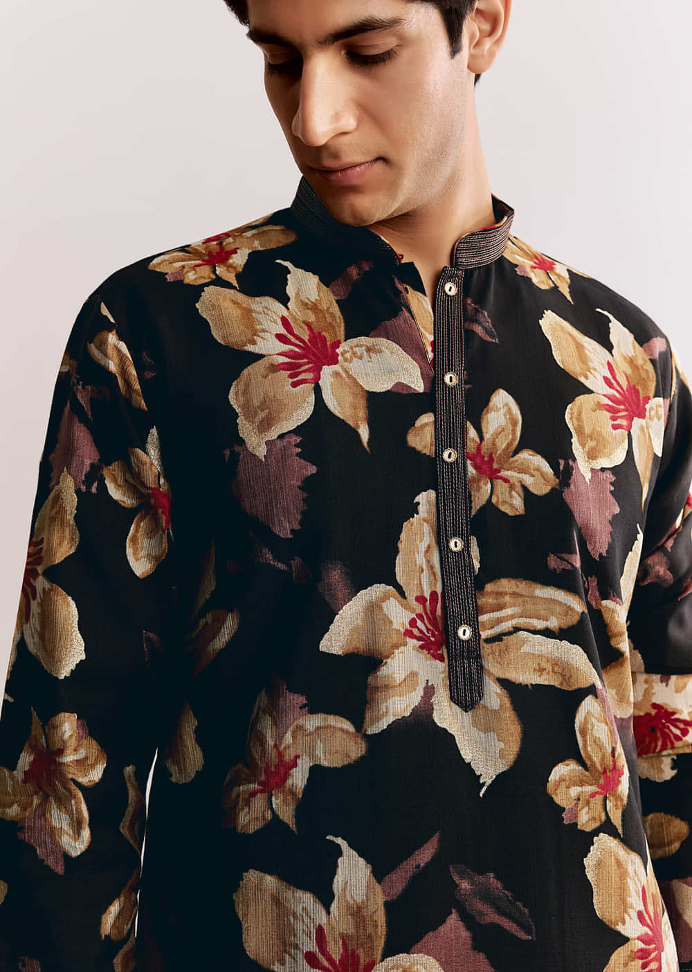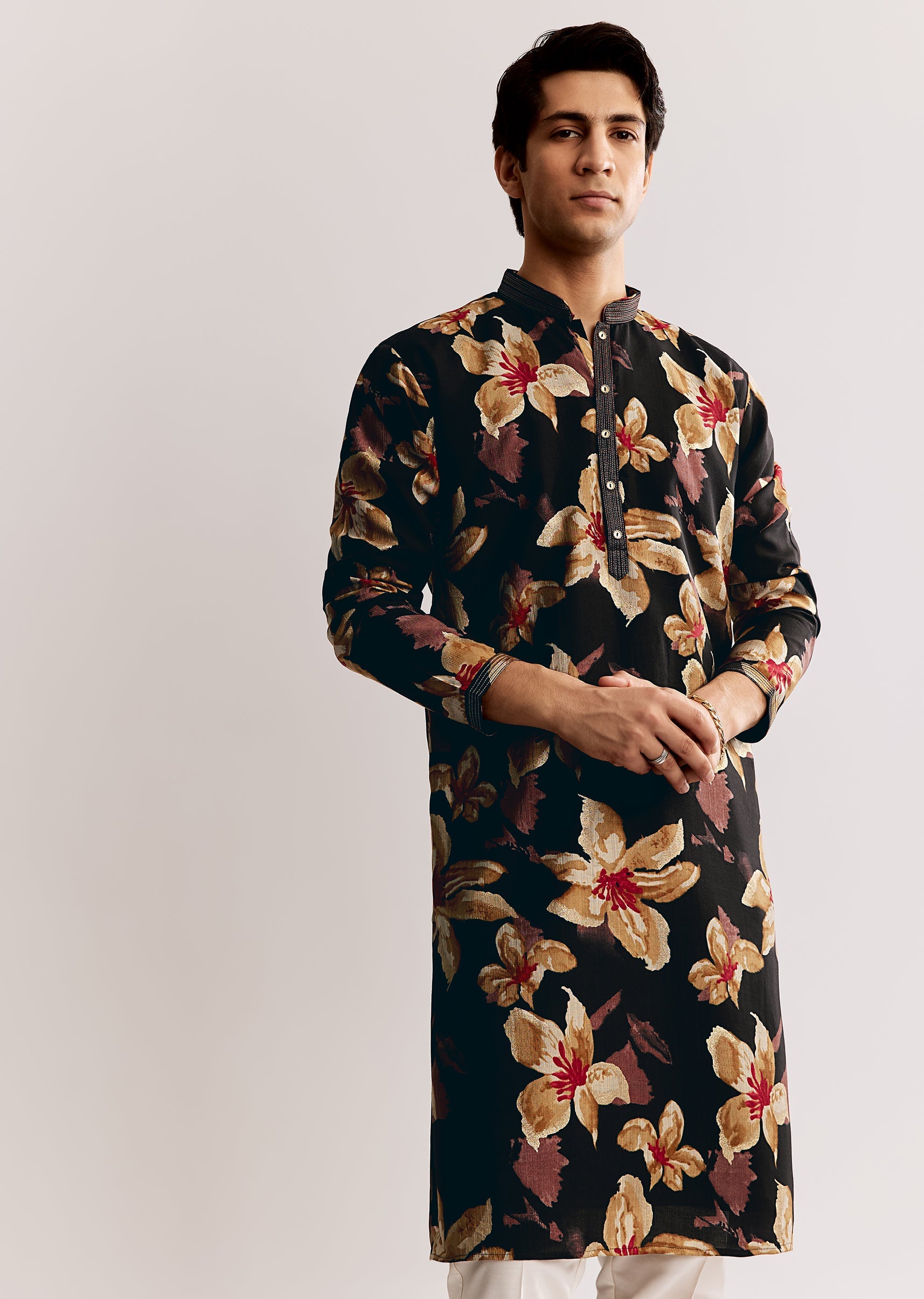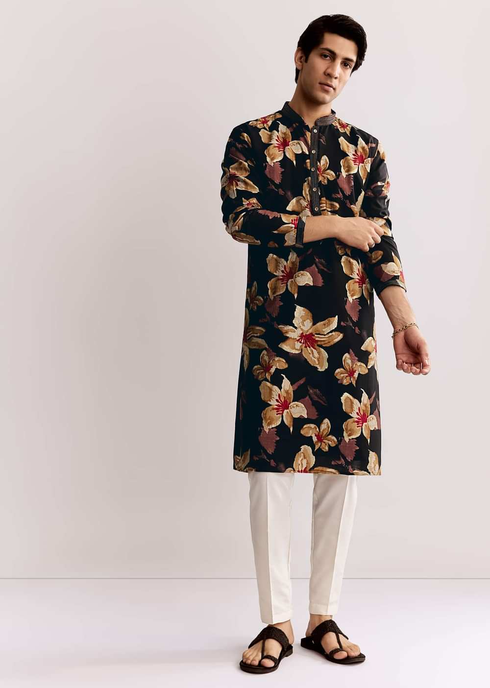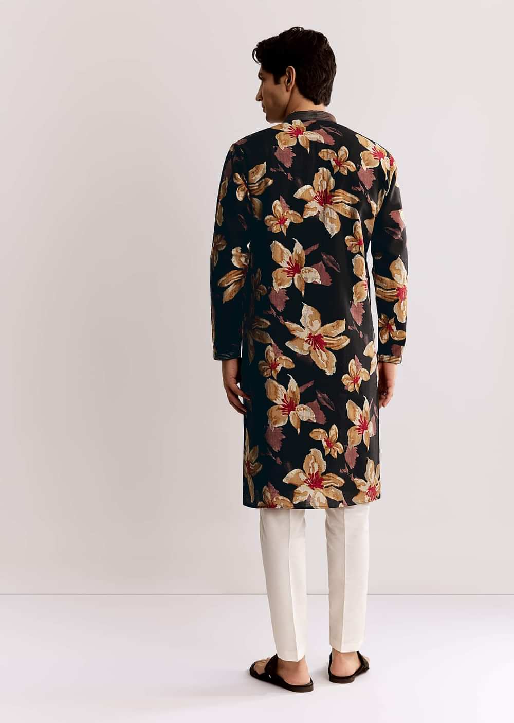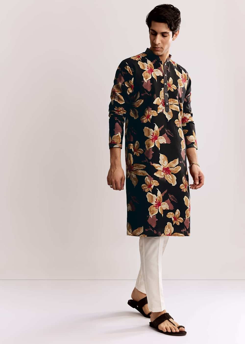 Blending Dark Elegance With Blooming Artistry This Black Silk Kurta Set Features A Floral Print That Adds Flair To Heritage Styling.Awarded As The Most Trusted Brand We'Re Delivering Styles You Love Just As Promised.